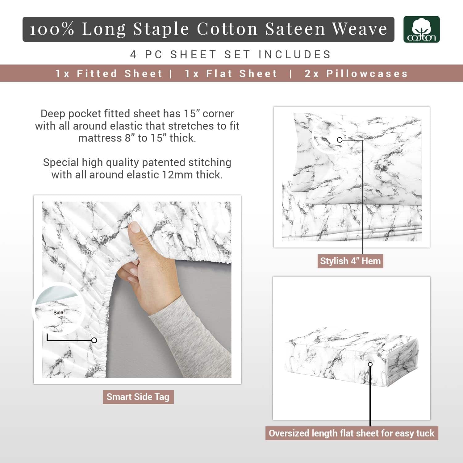 Juego de sábanas 100% algodón Puro Pizuna Queen Size,