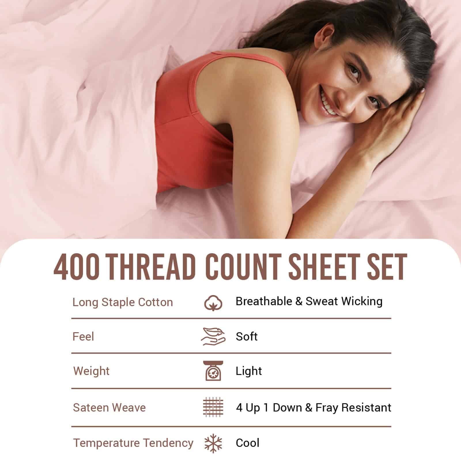 Juego de Sábanas 100% Algodón Puro RV King -Rosa Claro