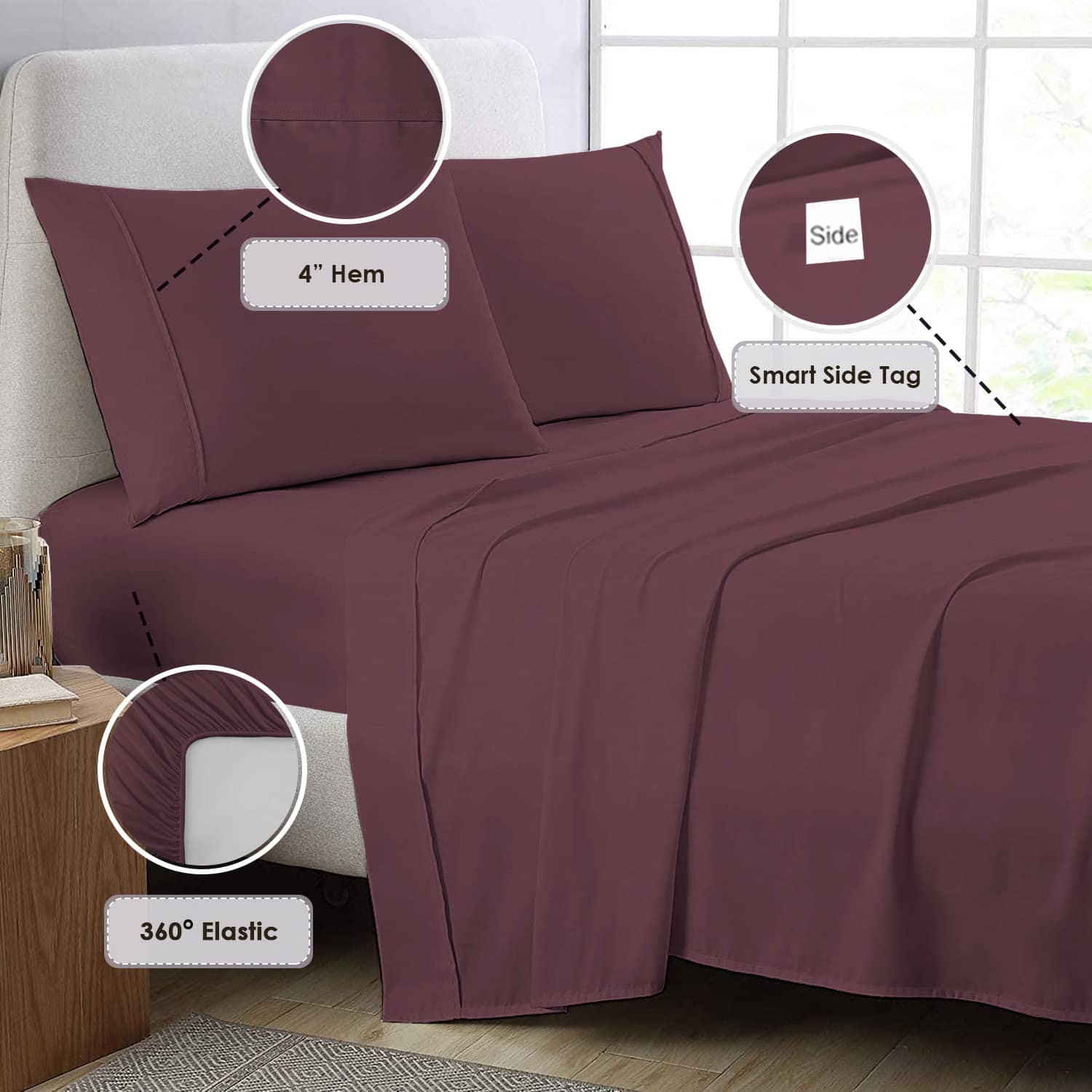 Juego de Sábanas 100% Algodón Puro Split King Morado