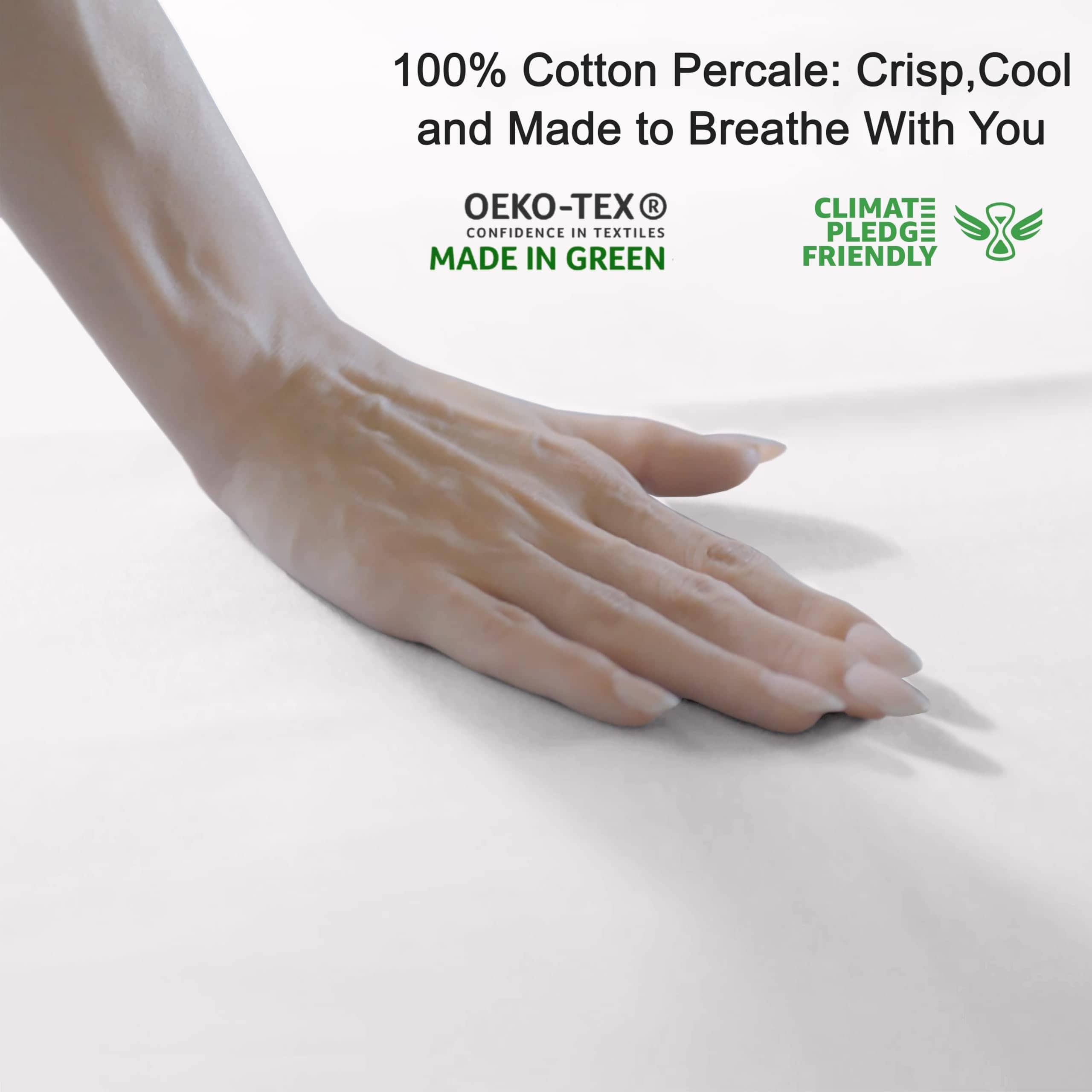 3. Durabilidad y fácil cuidado: Nuestras sábanas de algodón 100% están hechas de tejido de algodón percal que mejora la resistencia del tejido. Nuestras sábanas son lavables a máquina y requieren poco mantenimiento.