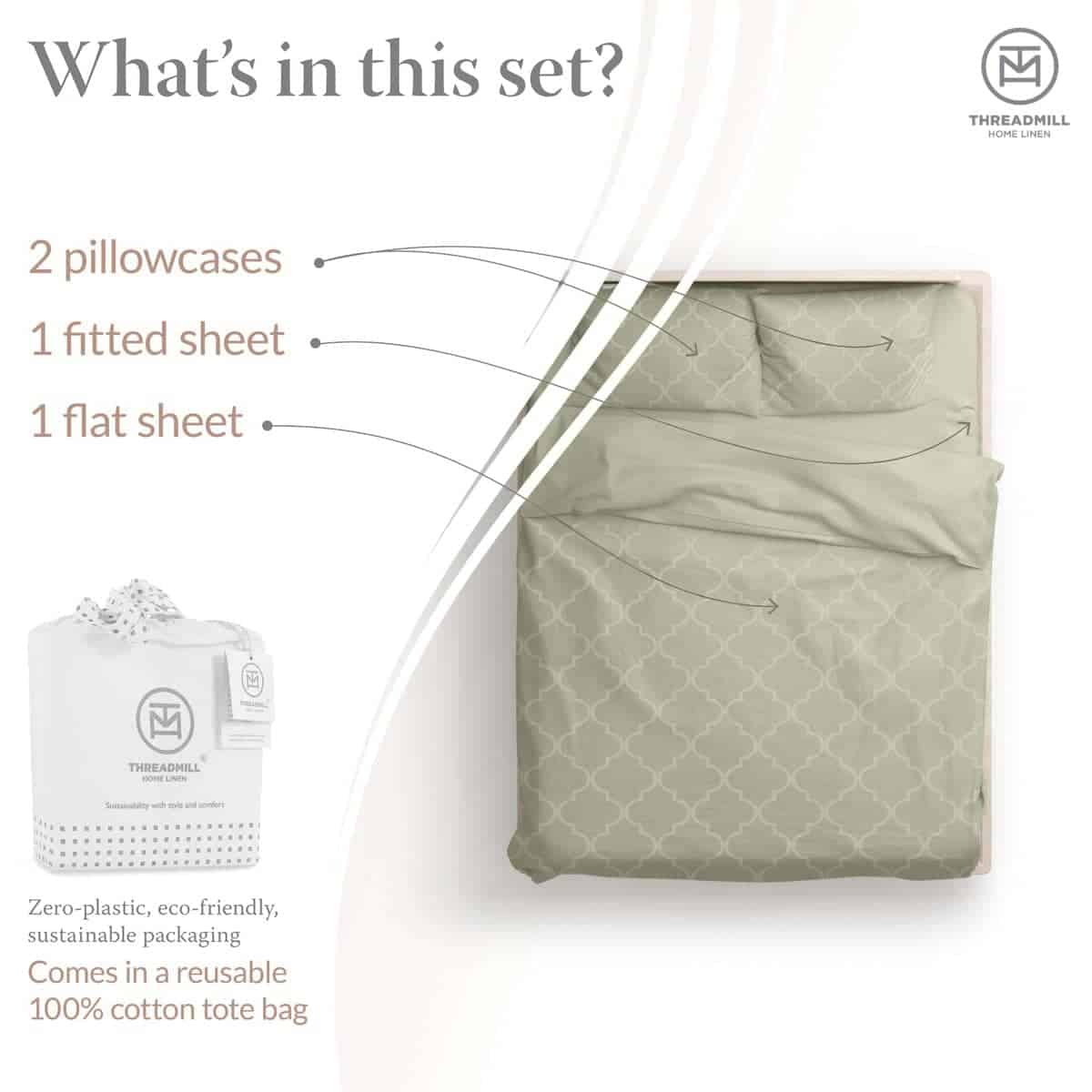 Juego de sábanas 100% algodón Threadmill para -Sage Green Tr