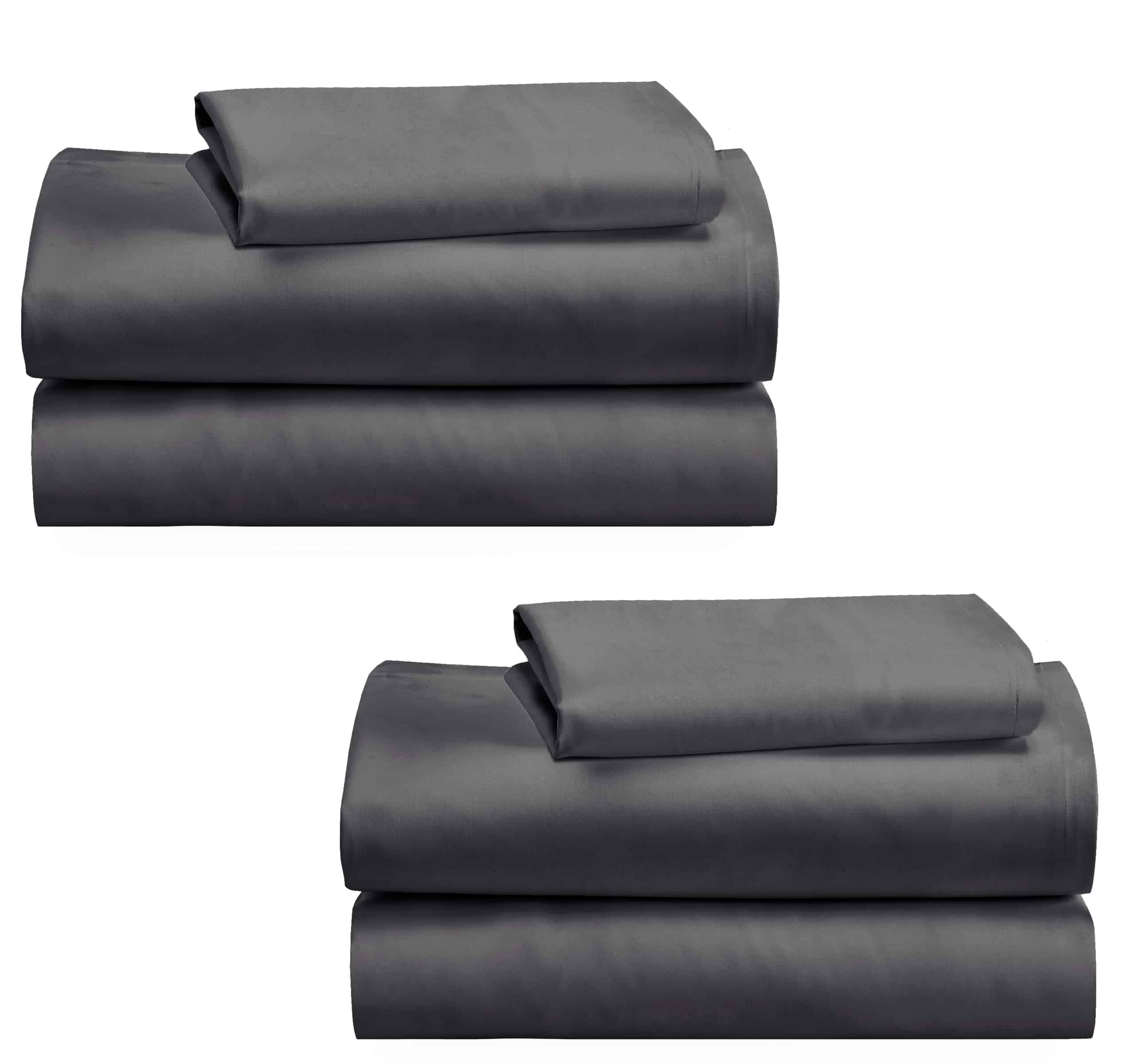 Conjunto de sábanas Twin de 2-Pack – juego de sábanas hechas de tela naturalmente cómoda de satén de algodón 100%. Estas suaves, transpirables y refrescantes sábanas de algodón Twin están diseñadas para brindar comodidad duradera todo el año. Estas sábanas grises con tejido de satén no son microfibra sintética ni sábanas mezcladas de poliéster. Estas sábanas están hechas con el mejor algodón cultivado en India y todos nuestros juegos de sábanas de algodón y fundas de almohada son amados por los clientes por su alta calidad, suavidad y comodidad. Incluye en este juego de sábanas Twin de 2-Pack: 2 sábanas planas, 2 sábanas ajustadas con bolsillo de 12 pulgadas y 2 fundas de almohada de tamaño estándar. Las fundas de almohada con cierre de sobre garantizan un aspecto ordenado. Nuestras sábanas ajustadas inferiores tienen elástico en todo el contorno y un ‘indicador de cabeza/pie’ para facilitar la experiencia de hacer la cama. Cuidado y soporte de lavado: estos juegos de sábanas Twin de 2-Pack son fáciles de lavar y secar a máquina y se vuelven más suaves con cada lavado. Han sido probados para el encogimiento, la formación de bolitas y la solidez del color. Compre sin riesgos, ya que puede devolver el juego de sábanas si no le gusta, incluso si están lavadas. Lo que nos hace dignos de confianza: nuestra colección de ropa de cama está certificada como ESTÁNDAR 100 por OEKO-TEX para garantizar que no entren sustancias nocivas en su cama. Utilizamos cajas no plásticas para nuestro embalaje y estamos comprometidos con procesos conscientes y éticos. En 2022 y 2023 donamos más de 22000 piezas de sábanas y ropa de cama a organizaciones benéficas locales en los EE. UU.