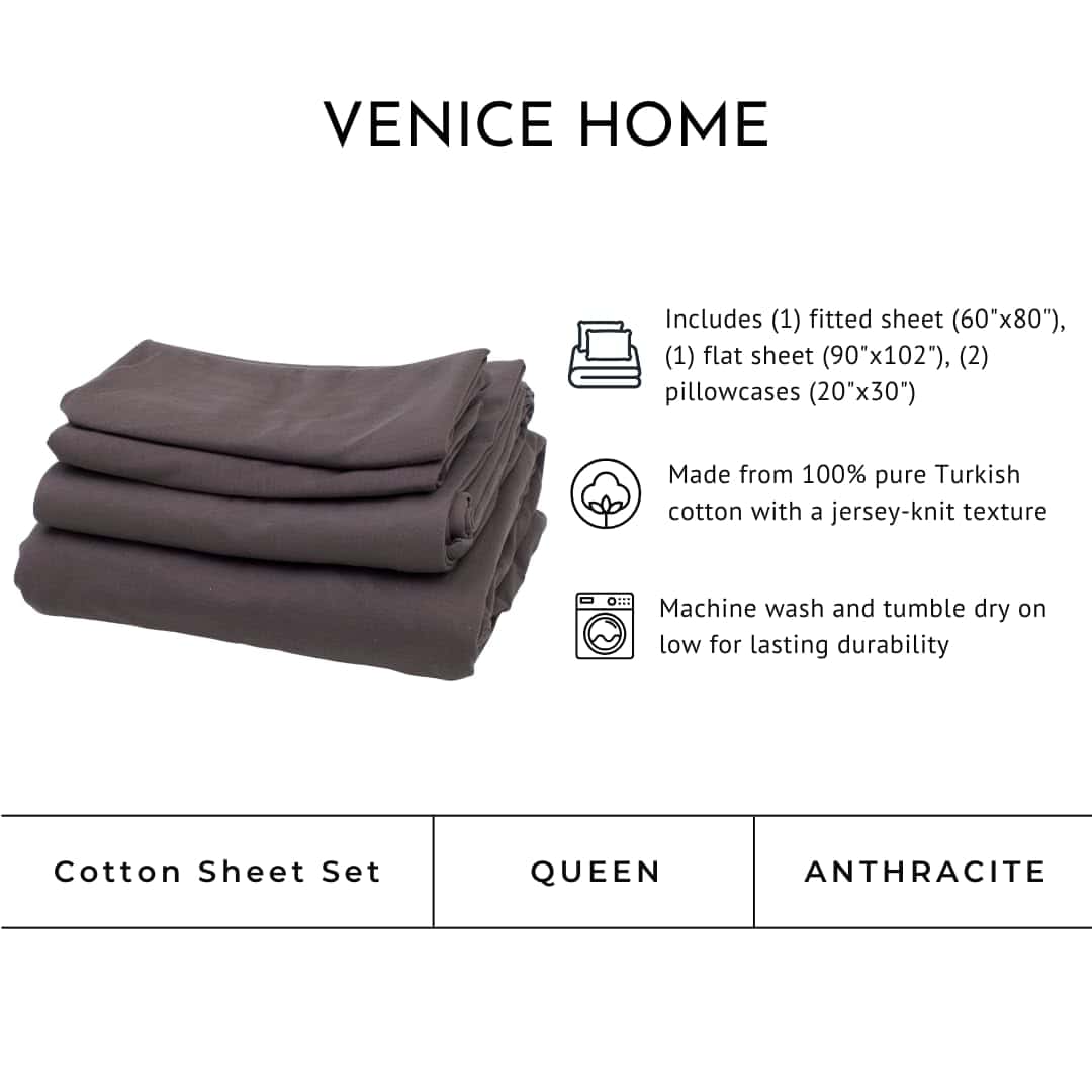 2. Juego de sábanas completo: Eleva tu santuario de sueño con nuestro Juego de Sábanas de Jersey de Algodón 100% de Venice Home, que incluye una sábana ajustable suave y transpirable, una sábana plana a juego y dos fundas de almohada para un conjunto de dormitorio cohesivo y elegante.
