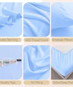 2. ELEVA TU ESTILO DE VIDA: Indulge en nuestra calidad superior Eucalipto Tencel Sheets. Con 400 hilos y tejido satén, son increíblemente suaves y se vuelven aún más suaves con cada lavado. La sábana ajustable tiene un bolsillo extra profundo de 18″ y se adaptará sin esfuerzo incluso a los colchones con la capa superior más gruesa.