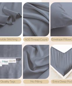 2. ELEVA TU ESTILO DE VIDA: Deleitate con nuestras sábanas eucalipto Tencel de calidad superior. Con 400 hilos y tejido satén, son suavemente soñadoras y solo se vuelven más suaves con cada lavado. La sábana ajustable tiene un bolsillo extra profundo de 18″ y se adaptará sin esfuerzo incluso a los colchones más esponjosos.
