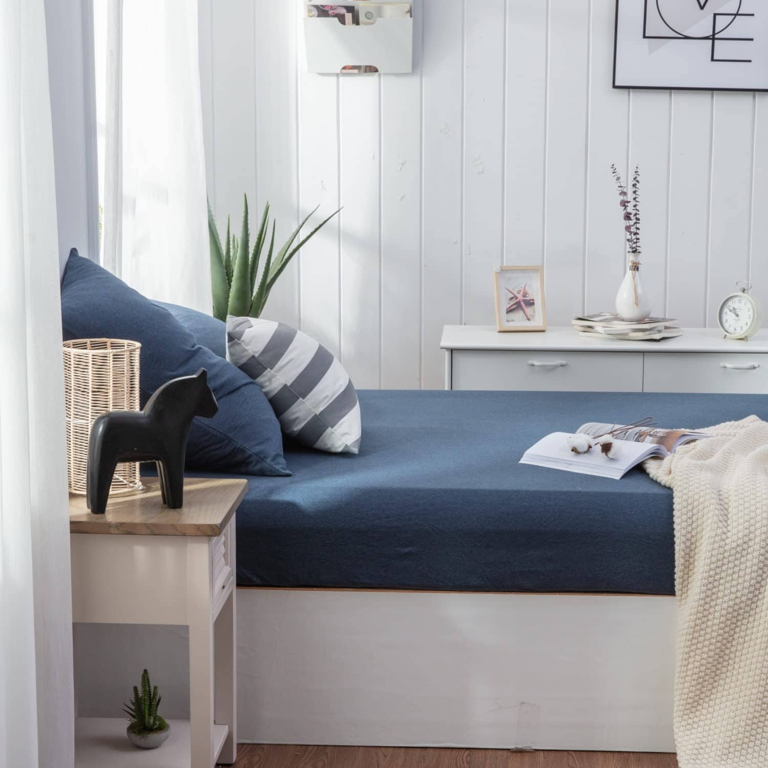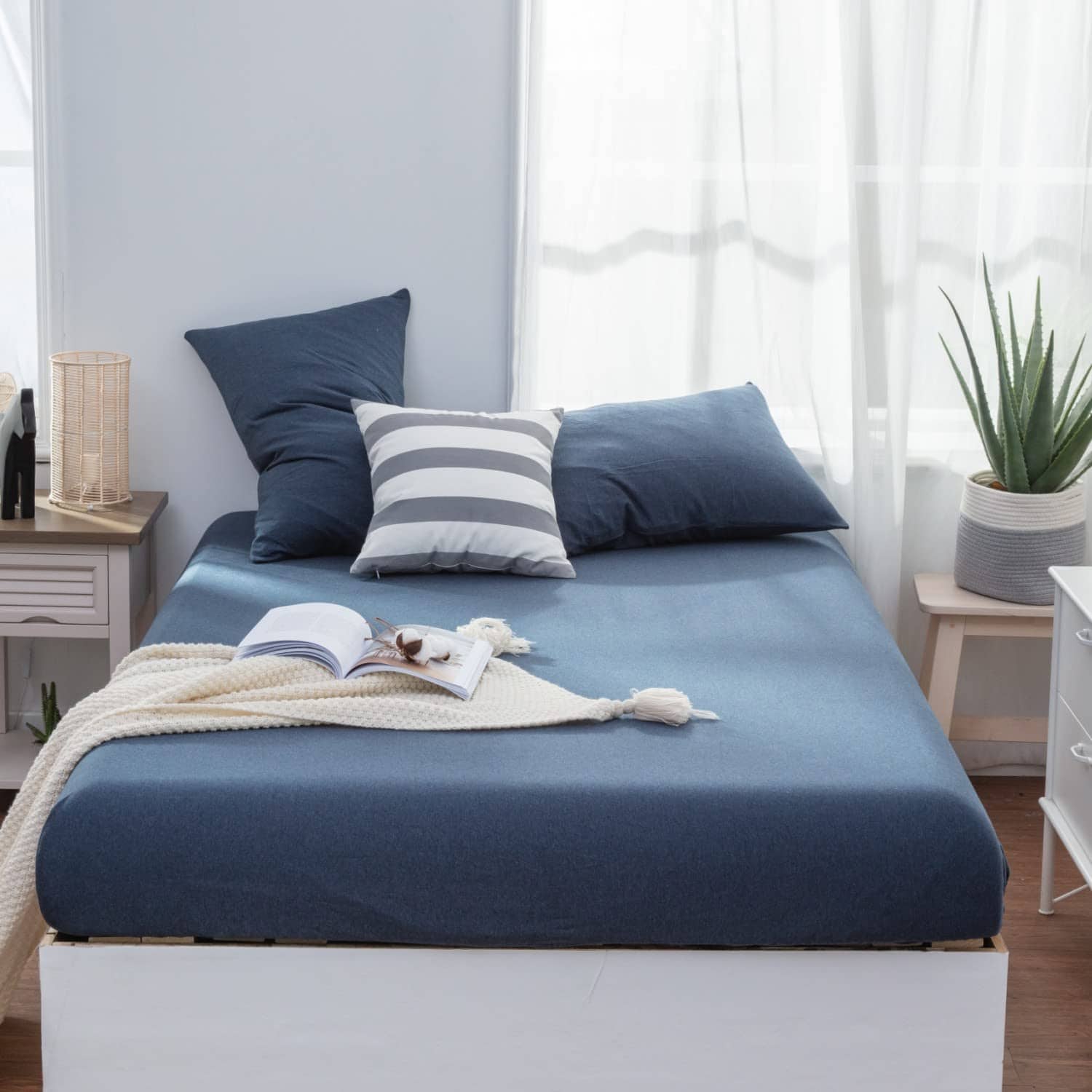 1. 100% Jersey Knit Cotton: Súper suave como una camiseta de algodón. Utilizamos material de algodón jersey de alta calidad complementado con una mano de obra superior que hace que nuestros juegos de sábanas duren, nunca se desvanecen, son resistentes a la contracción y sin arrugas.