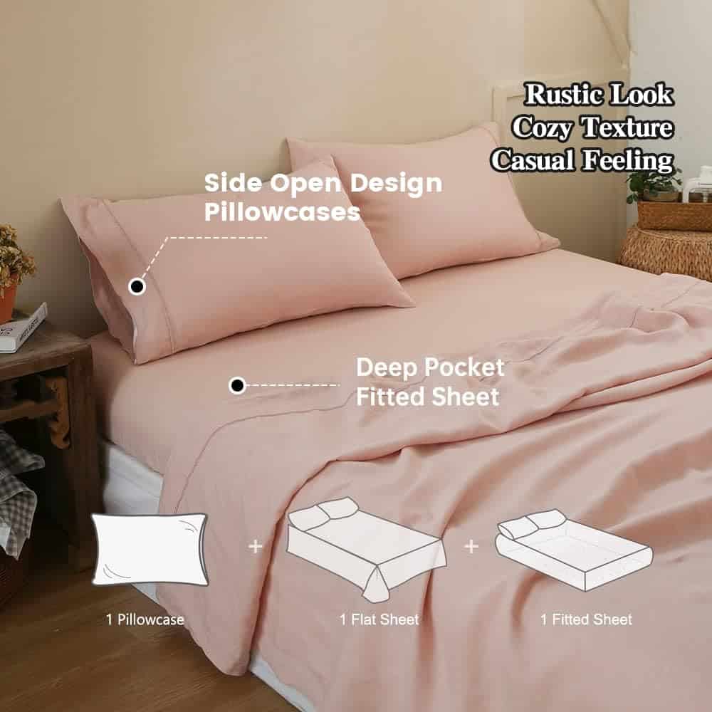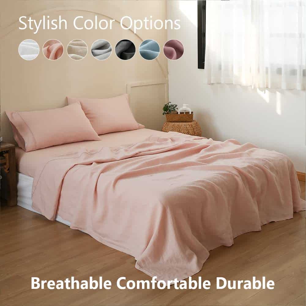 Juego de Sábanas 100% Lino con Bordado Lavado – 4 Piezas (1