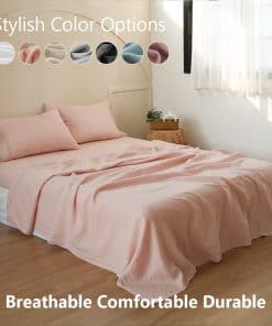 Juego de sábanas de lino 100% de alta calidad con elegante bordado, perfecto para darle un toque especial a tu habitación. El set incluye una sábana plana, una sábana ajustable y dos fundas de almohada, todo lo que necesitas para un descanso reparador. El lino es conocido por su transpirabilidad, por lo que te mantendrá fresco en verano y cálido en invierno. Además, su suavidad mejorará con cada lavado. La sábana ajustable tiene un diseño de bolsillo profundo con elástico en todo su contorno para un ajuste perfecto a tu colchón. Completa tu juego de cama con el juego de funda de edredón/sábana ajustable/fundas de almohada a juego que se encuentran disponibles. ¡No esperes más y experimenta la comodidad y elegancia del lino con este increíble juego de sábanas!