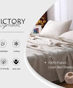 1. CARACTERÍSTICAS DEL MATERIAL: Lino orgánico premium 100% natural cultivado en Normandía, Francia. Las fibras de lino son más fuertes. El lino mantiene naturalmente el calor durante los meses de invierno, y sus propiedades de absorción de humedad ayudan a mantener seco y fresco a quien duerme caliente en los meses más cálidos. El lino regula la temperatura durante la noche.