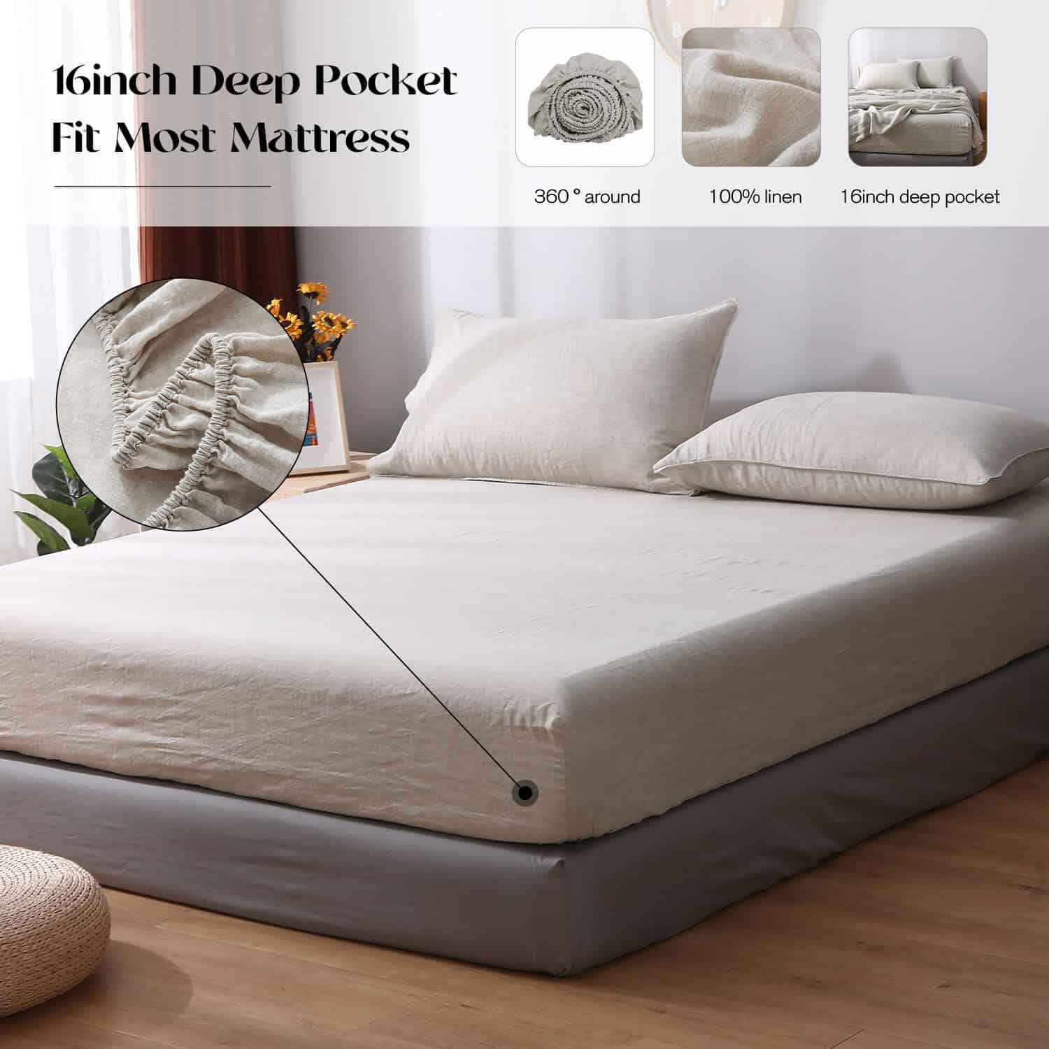 4. CUIDADO FÁCIL: Lavable a máquina, el juego de sábanas de lino no se decolora, se arrugará un poco, pero se volverá aún más suave después de cada lavado, secado suave y tibio en secadora está bien, pero todos sugerimos secar al aire si puedes.