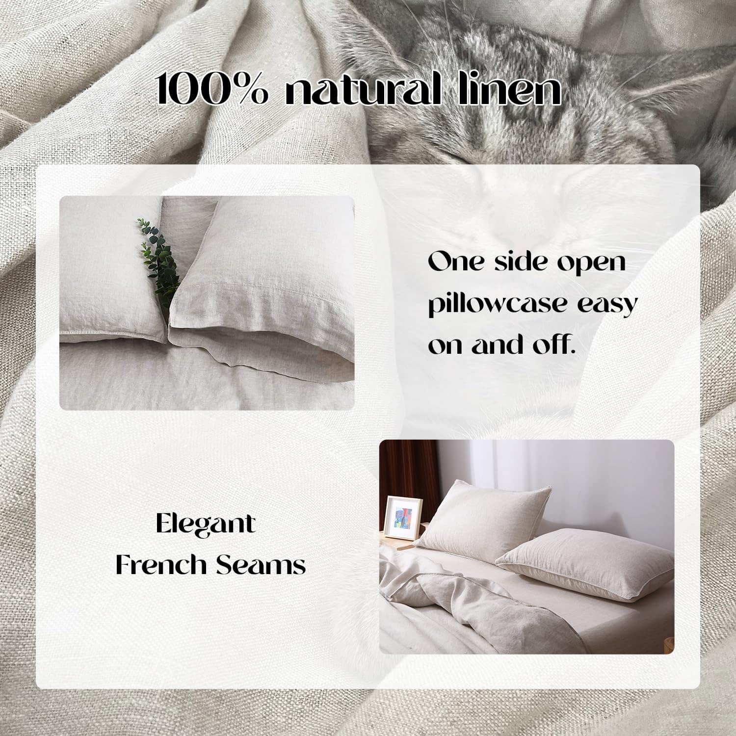 2. LUJO DE LINO PARA TODAS LAS ESTACIONES: La tela está certificada GOTS, Oeko-Tex Standard 100 y MADE IN GREEN. El lino es un tejido único con buena higroscopicidad, respetuoso con el medio ambiente y orgánico, también es la elección correcta para proteger la piel sensible con su efecto antiestático y permitir que el cuerpo respire bien, se seca muy rápidamente. Lo cual puede brindarte una sensación de confort y una experiencia de sueño sin igual. Tenemos varios colores para elegir y combinar con cualquier dormitorio.
