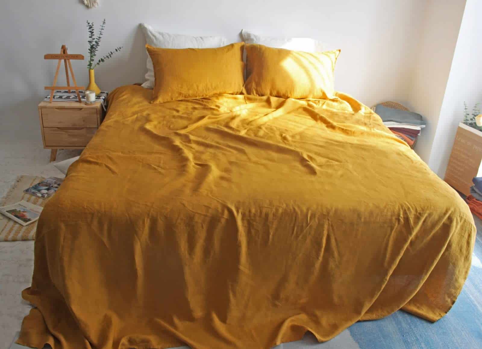 4. CUIDADO FÁCIL: Lavable a máquina, el juego de sábanas de lino no se decolora, se arrugará un poco, pero se volverá aún más suave después de cada lavado. El secado suave a temperatura cálida está bien, pero todos sugerimos secar en línea si es posible.