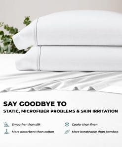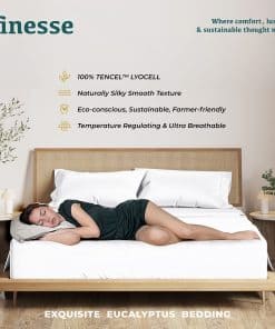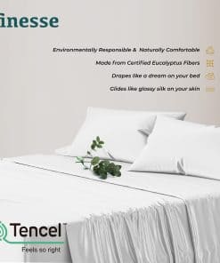 Este juego de sábanas California King de Tencel Lyocell ofrece una experiencia de sueño fresca y lujosa. Únicas en su género, estas sábanas de eucalipto de Tencel son ideales para quienes buscan un descanso reparador y un ambiente de sueño fresco. Las sábanas presentan propiedades de absorción de humedad que mantienen la temperatura perfecta durante toda la noche, lo que las convierte en la mejor opción para los que duermen calientes o en áreas húmedas. El juego incluye una sábana plana, una sábana ajustable con bolsillos profundos para adaptarse a colchones de hasta 18», y dos fundas de almohada King a juego. Estas sábanas de Tencel son 4 veces más duraderas y resistentes que otras telas, volviéndose más suaves y cómodas con cada lavado. El material es suave al tacto y no se desgasta, pilla ni decolora con el tiempo. Transforma tu dormitorio en un oasis de confort con estas sábanas de eucalipto de Tencel, diseñadas para ofrecer el mejor descanso y sostenibilidad. Sumérgete en la suavidad y la frescura de estas sábanas refrigerantes California King, perfectas para satisfacer tus necesidades de sueño y comodidad.