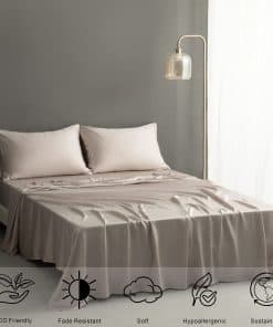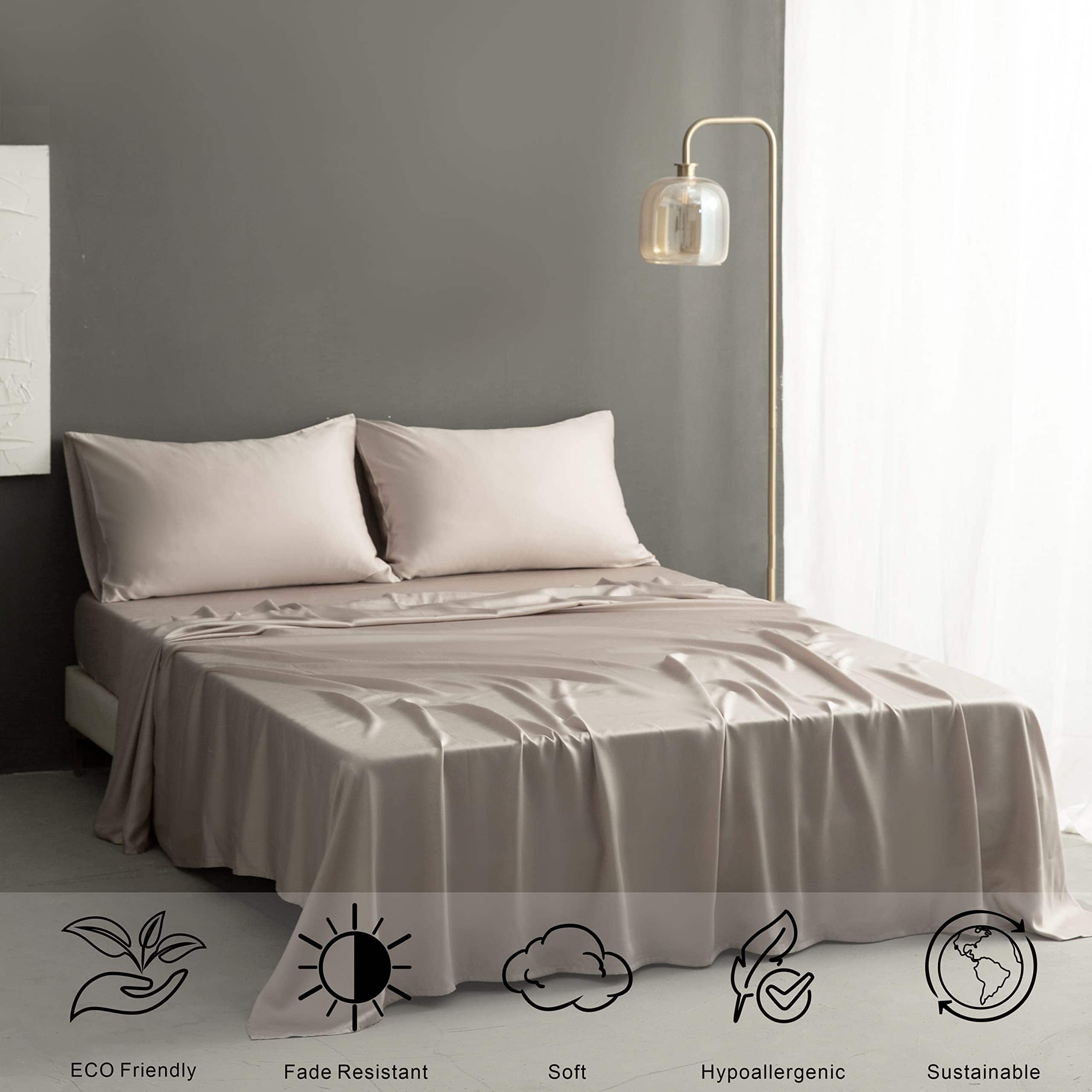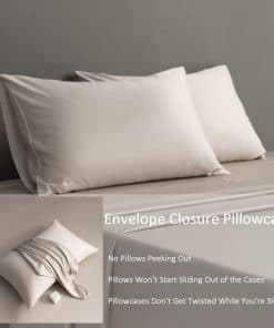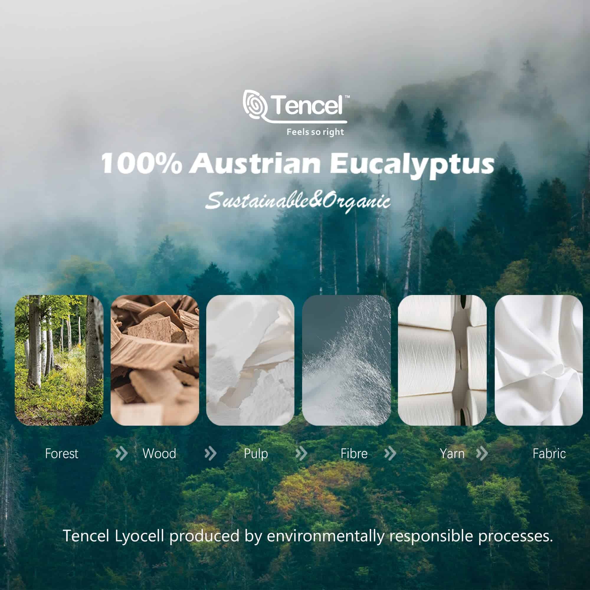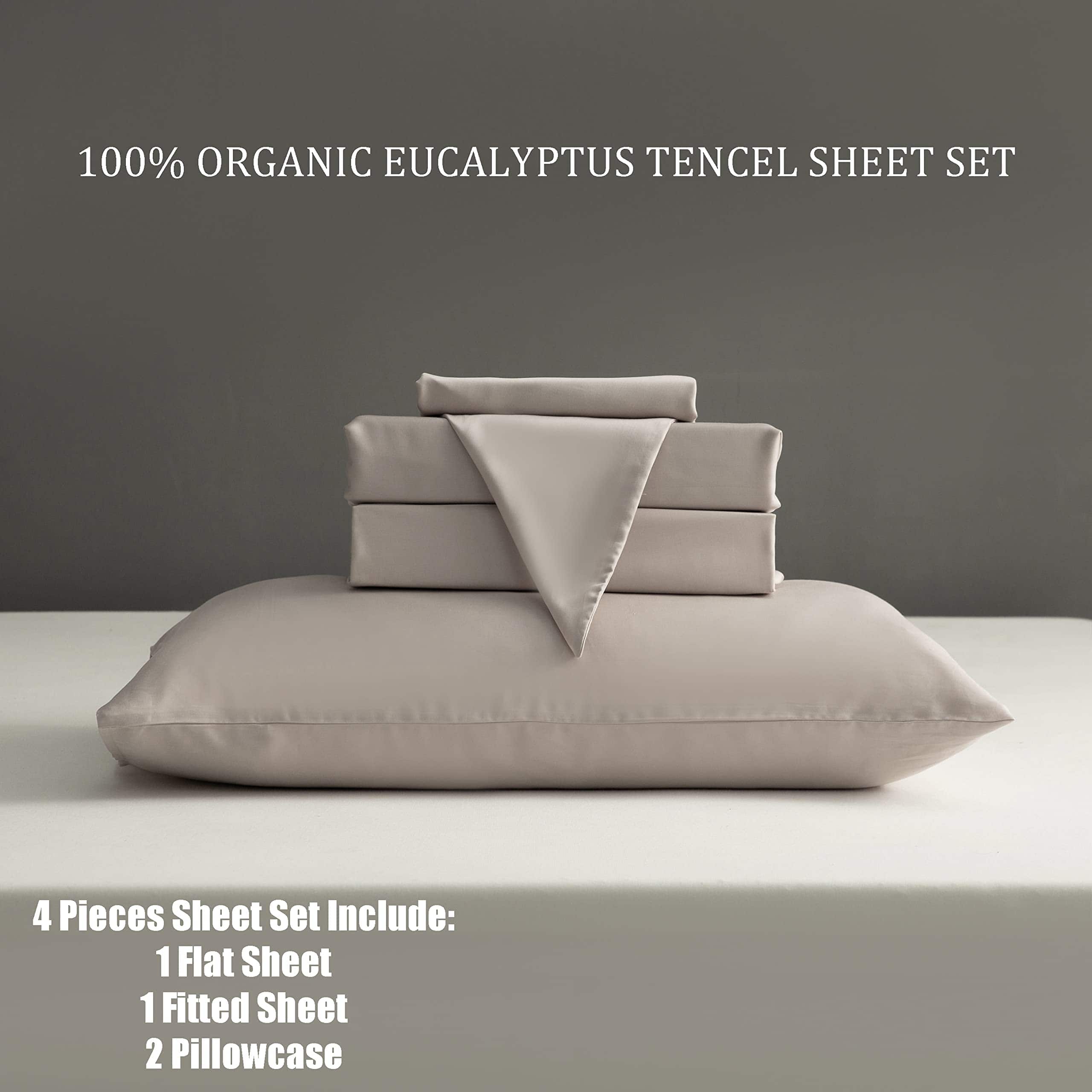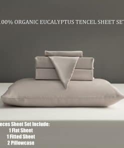100% Eucalipto Lyocell de Austria, la tela está certificada por Oeko-Tex Standard 100. Lyocell es una fibra de madera con una superficie suave y una excelente función de absorción de humedad, que puede promover la regulación natural de la temperatura corporal, haciendo que todo el cuerpo se sienta agradable y duerma cómodamente. Sábanas refrigerantes para personas que duermen calientes. El juego de sábanas de Eucalipto de 4 piezas incluye: 1 Sábana plana (90″x 102″), 1 Sábana ajustable (60″x 80″+16″), 2 Fundas de almohada (30″x 20″) con diseño de sobre que facilita el poner y quitar la almohada. La sábana ajustable está diseñada para adaptarse a casi todos los colchones con un grosor que no exceda los 16 pulgadas. La fibra de Lyocell ha ganado reputación en el mercado por su proceso de producción amigable con el medio ambiente Carbon Zero. Los consumidores pueden asegurarse de que su elección de moda no afecte negativamente al medio ambiente y preserve los recursos para el planeta. Lavado suave a máquina y secado en secadora a baja temperatura es suficiente, no usar lejía. La forma suave de las fibras mantiene la tela suave y cómoda a través de múltiples lavados. Empacado en una bolsa de Tencel que es coleccionable, reutilizable y respetuosa con el medio ambiente. Material suave de Tencel, excelente calidad con un hermoso empaque, que se puede usar como bolsa de almacenamiento o de viaje. Buena opción para sábanas de regalo para vacaciones, sábanas de Navidad.