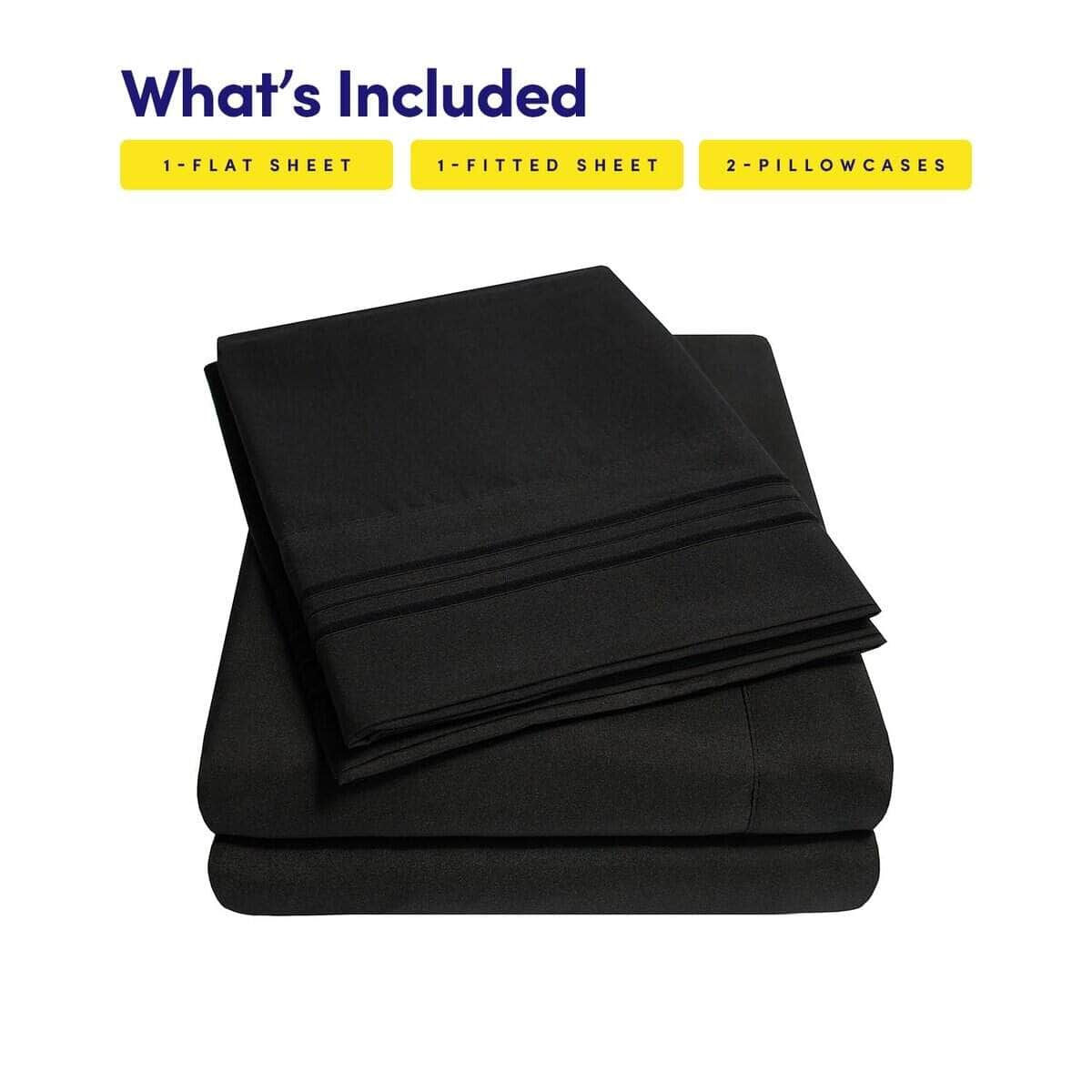 En colección Sweet Home, ¿por qué elegirnos? En Sweet Home Collection, nos esforzamos por crear productos utilizando los mejores textiles posibles a precios razonables. Encontramos técnicas que incluyen una mejor costura, mayor tejido y materiales más asequibles. Calidad: Nuestra colección 1500 Supreme es un claro ejemplo de nuestro compromiso con la calidad y la retroalimentación de los clientes. Nuestro objetivo es crear clientes recurrentes durante años. La microfibra está marcando el camino hacia un futuro de ropa de cama fina utilizando la última tecnología. Utilizada en todas las industrias y en crecimiento de popularidad, la microfibra continúa siendo más fuerte y confiable cada año. Precio: Compare nuestro precio con otros productos similares. Con solo $25, no solo somos la mejor calidad, sino también el mejor precio. Ser amigable con su billetera es uno de nuestros valores fundamentales. Compre con nosotros: eche un vistazo a toda nuestra línea de ropa de cama Sweet Home Collection para renovar su dormitorio. Proporcionamos sus juegos de sábanas esenciales, faldas de cama, edredones, colchas, protectores de muebles y mucho más. No dude en contactarnos para que podamos ayudarlo. Cómo nos comparamos: aquí están nuestras medidas para la ropa de cama, Queen: 1 sábana plana (92″ x 102″) 1 ajustada (60″ x 80″) y 2 fundas de almohada estándar (20″ x 30″). King: 1 sábana plana (102″ x 105″) 1 ajustada (78″ x 80″) y 2 fundas de almohada estándar (20″ x 40″). Cal King: 1 sábana plana (108″ x 102″) 1 ajustada (72″ x 84″) y 2 fundas de almohada estándar (20″ x 40″). Full: 1 sábana plana (81″ x 96″) 1 ajustada (54″ x 75″) y 2 fundas de almohada estándar (20″ x 30″). ¿Qué hay dentro del paquete? El Full, Queen, King y Cal King vienen con 1 sábana ajustada, 1 sábana plana y 2 fundas de almohada. El twin viene con 1 sábana ajustada, 1 sábana plana y 1 funda de almohada. Cuidado fácil: siéntase libre de lavar en frío y secar en secadora sin tener que planchar después, ya que nuestra ropa de cama es resistente a las arrugas.