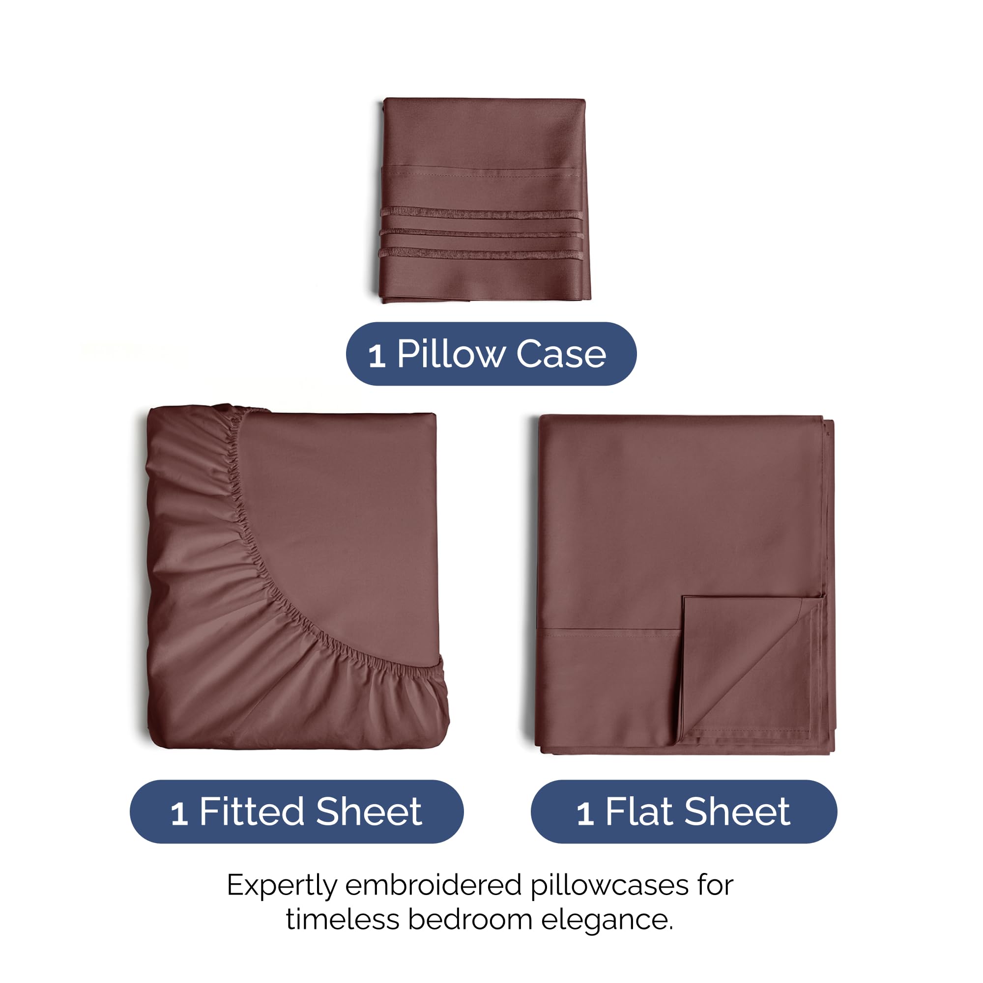 Juego de sábanas 3 piezas tamaño Twin XL – -Russet Oscuro