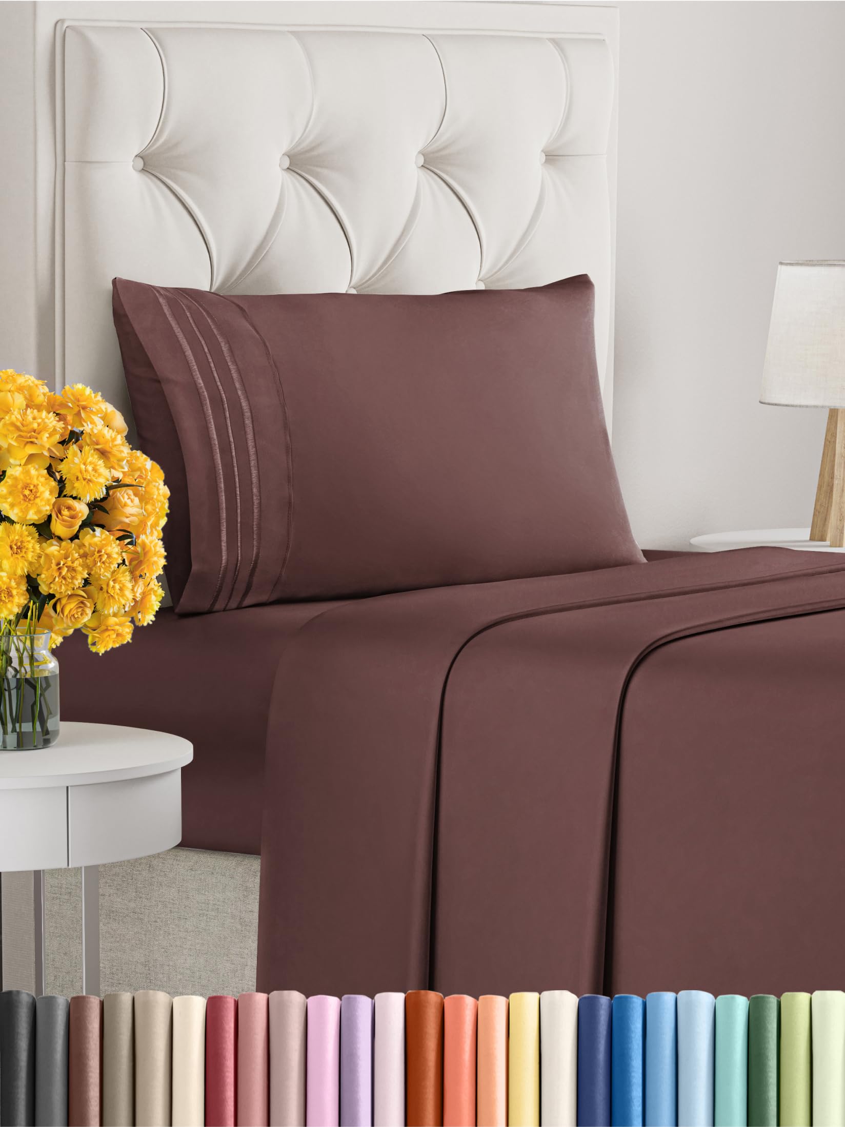 El juego de sábanas de 3 piezas en tamaño Twin XL viene con una funda de almohada, sábana plana y sábana ajustable en un hermoso color Russet Oscuro. Las sábanas están diseñadas para ofrecer una comodidad excepcional con su tejido de microfibra cepillada de la más alta calidad. Con bolsillos profundos para ajustar colchones de hasta 16 pulgadas de profundidad, estas sábanas son versátiles y se adaptan a la mayoría de los colchones del mercado. Sentirás la diferencia al experimentar la suavidad y frescura de estas sábanas, que son más suaves que las de algodón egipcio y algodón orgánico. Además, son fáciles de cuidar, sin arrugas y duraderas para un uso prolongado. Disfruta de una sensación de hotel de lujo todos los días con este juego de sábanas de CGK Unlimited.