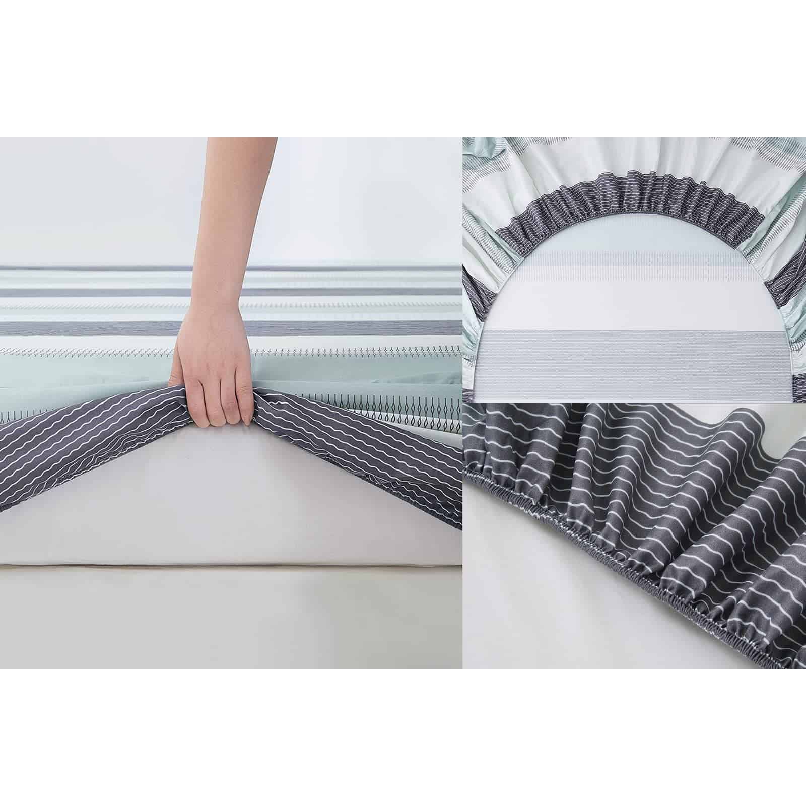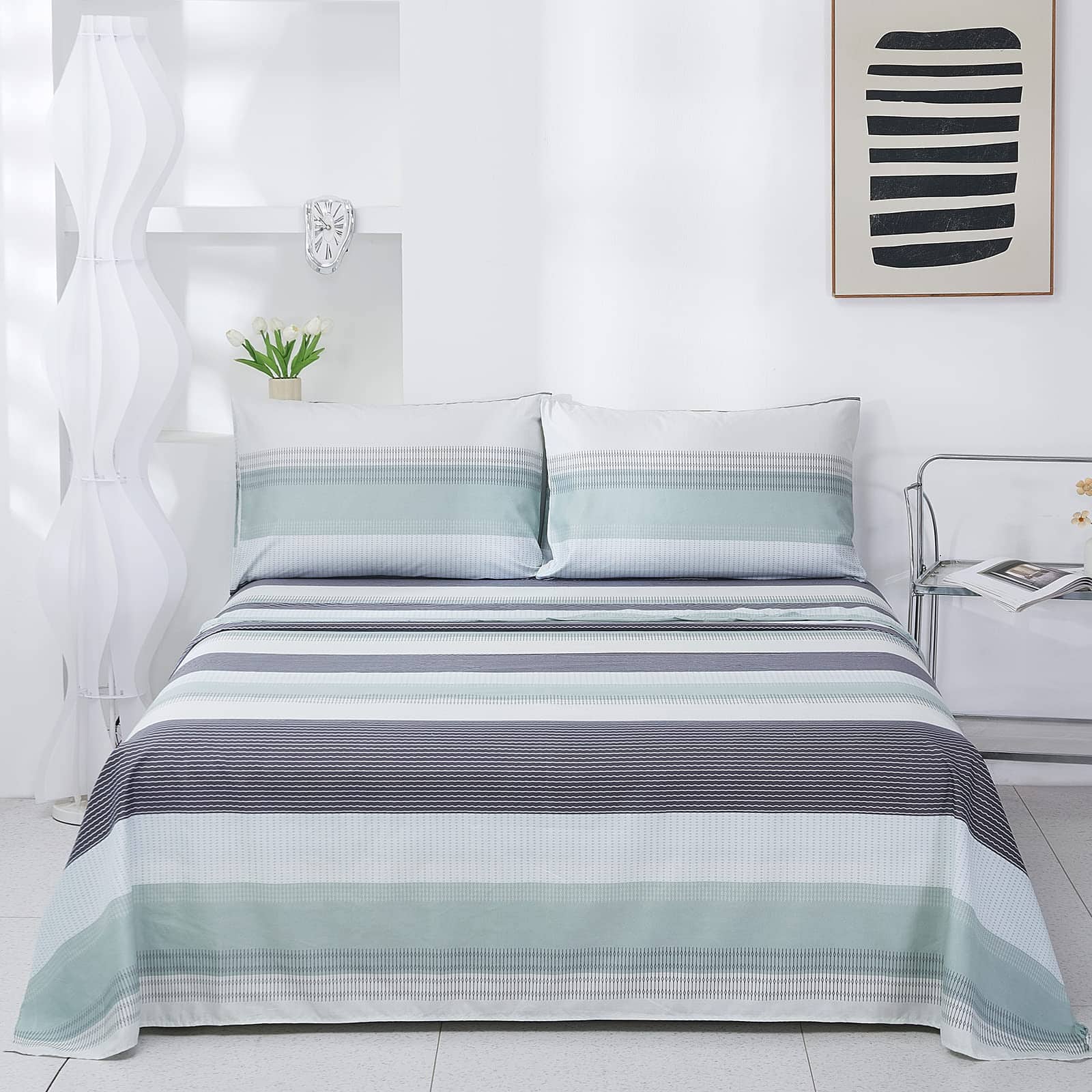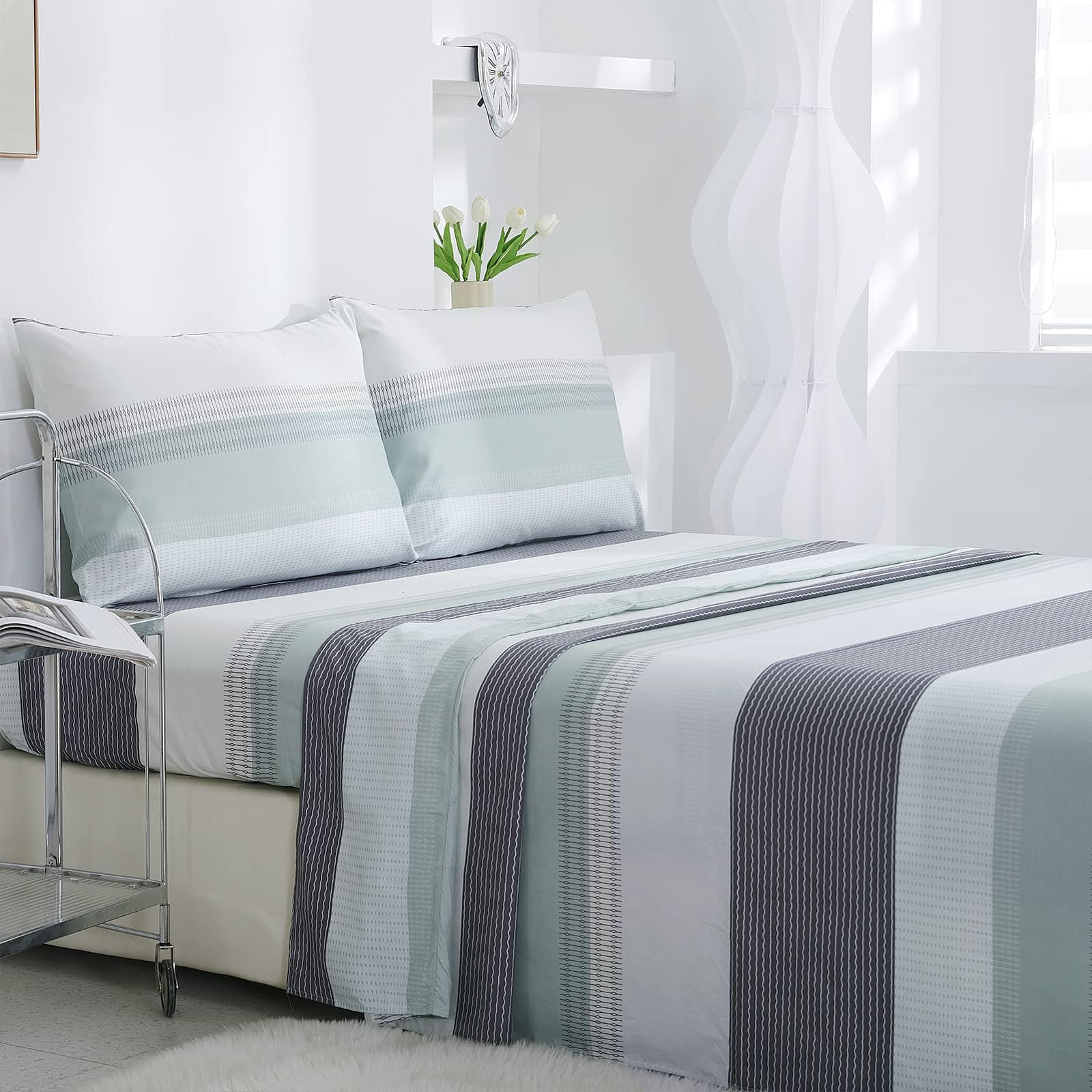 2. Apariencia Elegante: El diseño a rayas del juego de sábanas realza la belleza de tu dormitorio con su aspecto elegante y simple. Sus colores atmosféricos se adaptan a cualquier estilo de dormitorio y es una maravillosa idea de regalo para mamá y abuela en cumpleaños, Día de la Madre y Navidad.