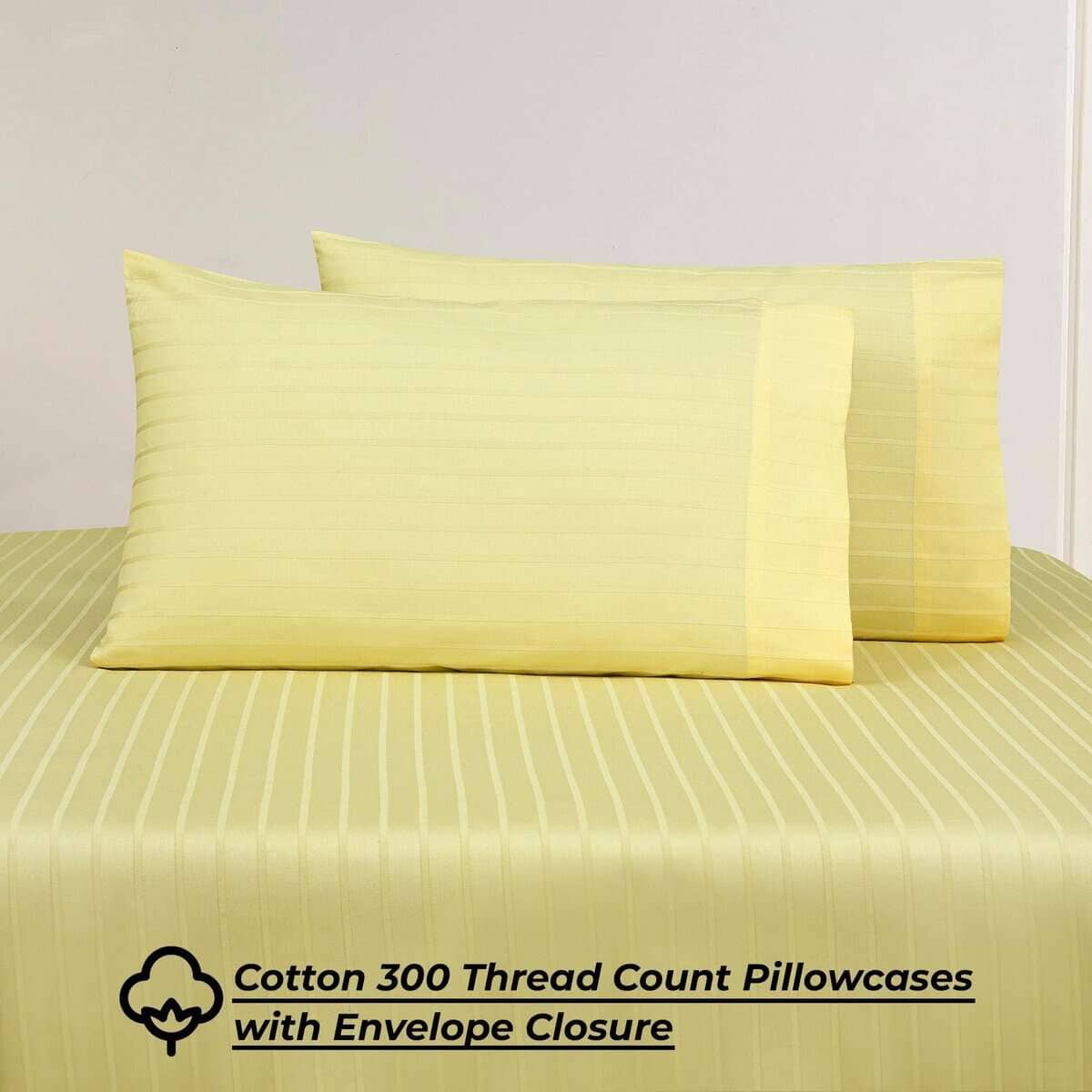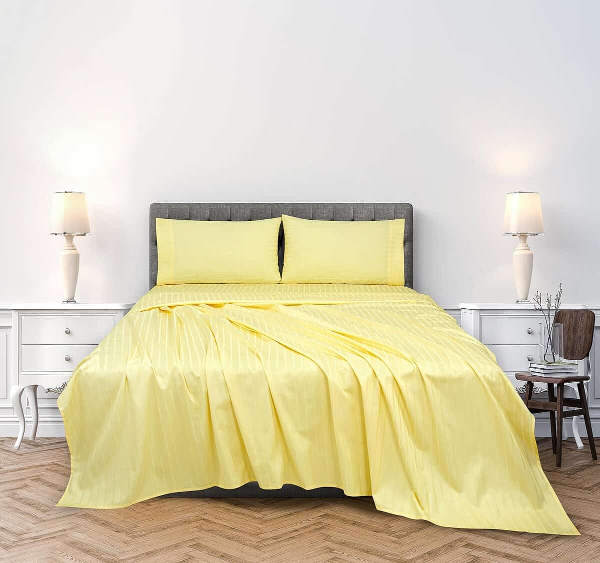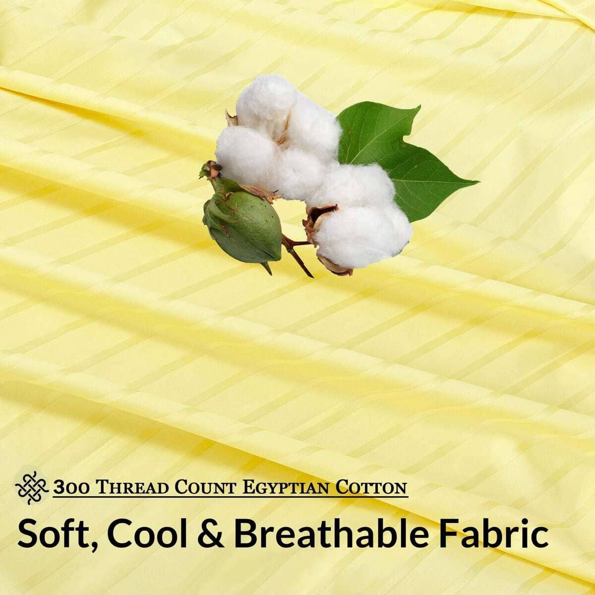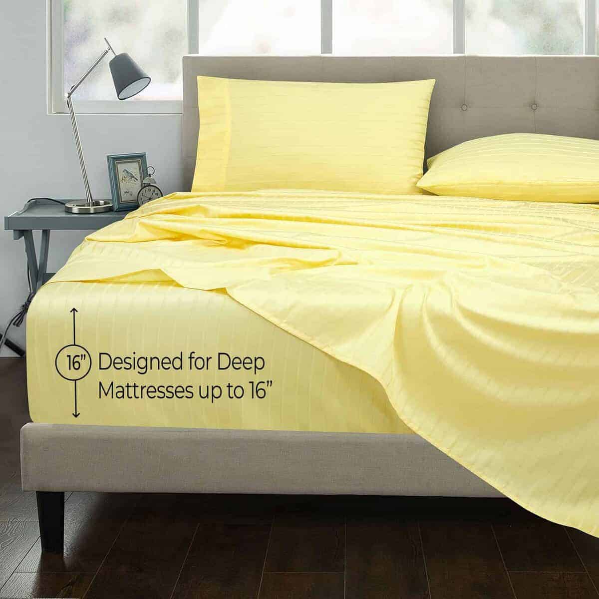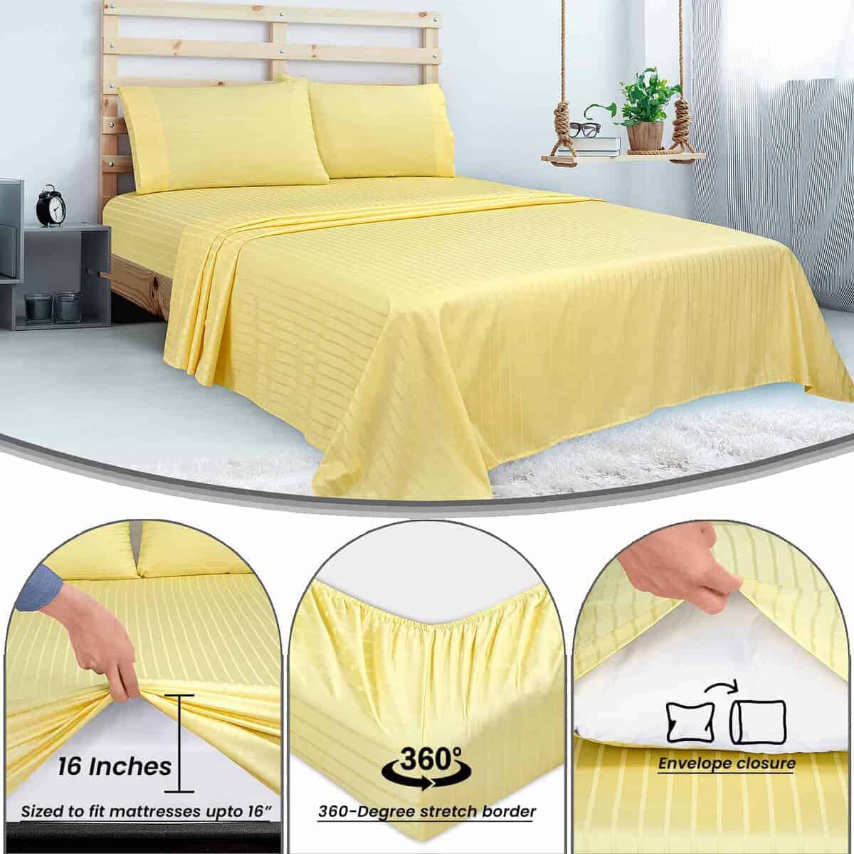 Juego de sábanas a rayas amarillas 100% algodón peinado de