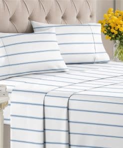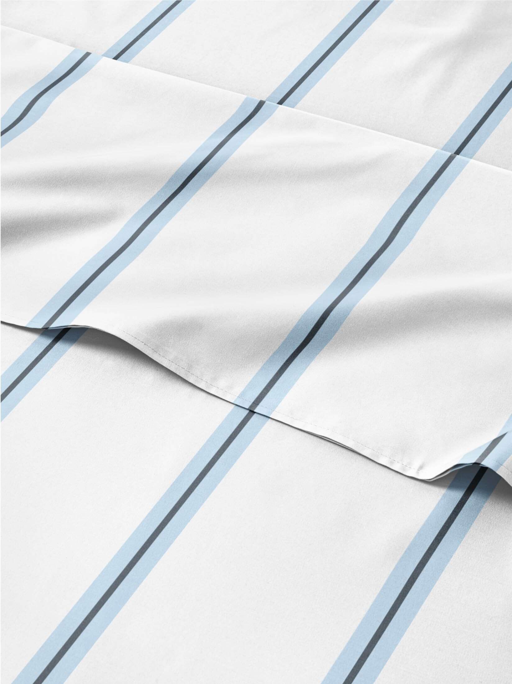 Juego de sábanas a rayas azules de 4 piezas para cama Queen