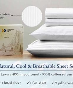 Creamos nuestras sábanas de algodón de fibra larga y fundas de almohada utilizando hilos de algodón puro. Cada juego de sábanas se fabrica con algodón natural, asegurando una resistencia excepcional. Esta calidad es fácil de sentir cuando te sumerges en sábanas frescas en tu color favorito. A pesar de nuestra dedicación a la artesanía y los materiales de calidad, nuestras sábanas de alta calidad ofrecen una relación calidad-precio imbatible. Cada juego de sábanas está cosido por un artesano experto e inspeccionado a mano. Esta atención al detalle los hace superiores en apariencia y sensación. También son fáciles de poner y quitar, con sábanas ajustables que cuentan con una calidad de elástico mejorada. Bolsillos profundos y un tejido de satén sedoso ofrecen facilidad de uso y una apariencia elegante, mientras que los nuevos tintes proporcionan un color duradero. Disfruta de la sensación suave de estas sábanas con la transpirabilidad del algodón. Desde sábanas individuales hasta sábanas king de bolsillo profundo, cada juego de sábanas de algodón se fabrica en una fábrica de última generación, ofreciendo comodidad, facilidad y estilo.