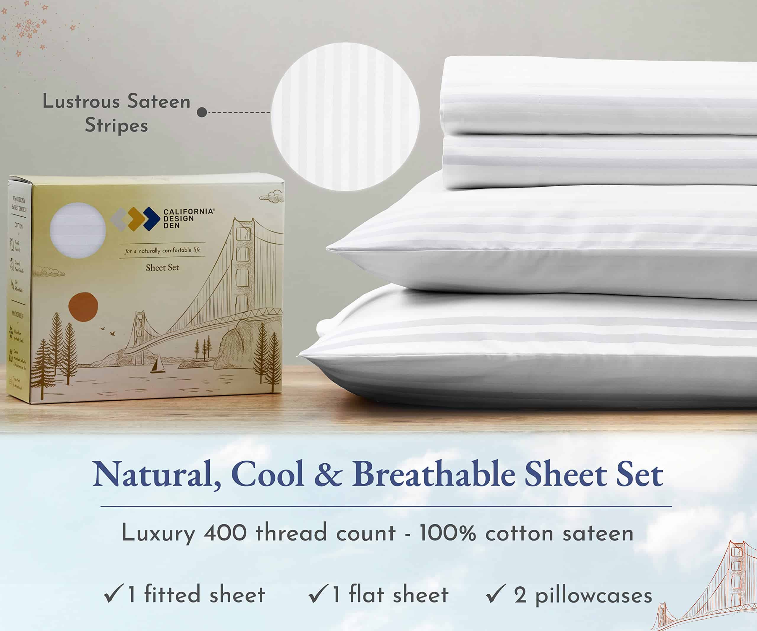 Juego de Sábanas a Rayas California Design -Blanco a Rayas