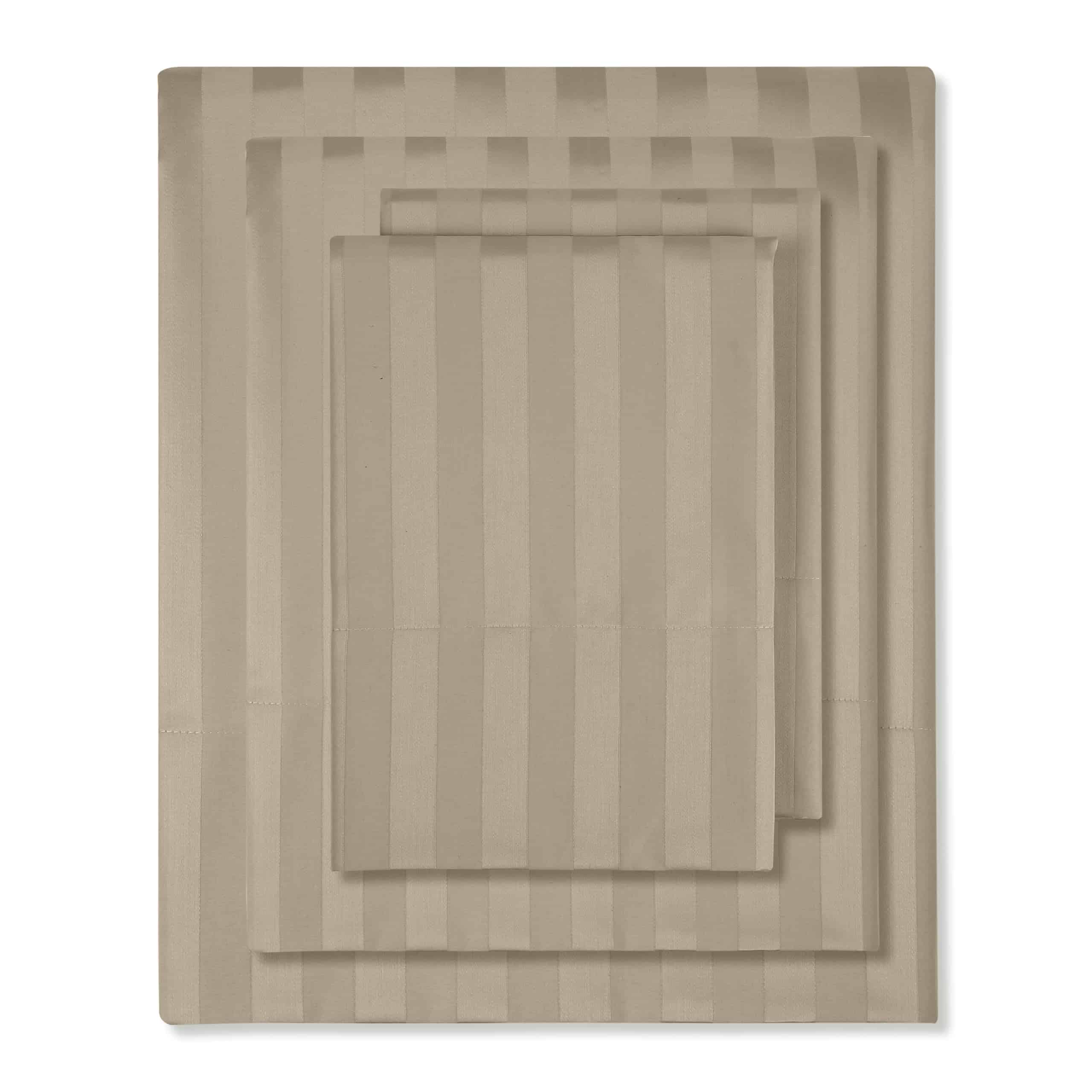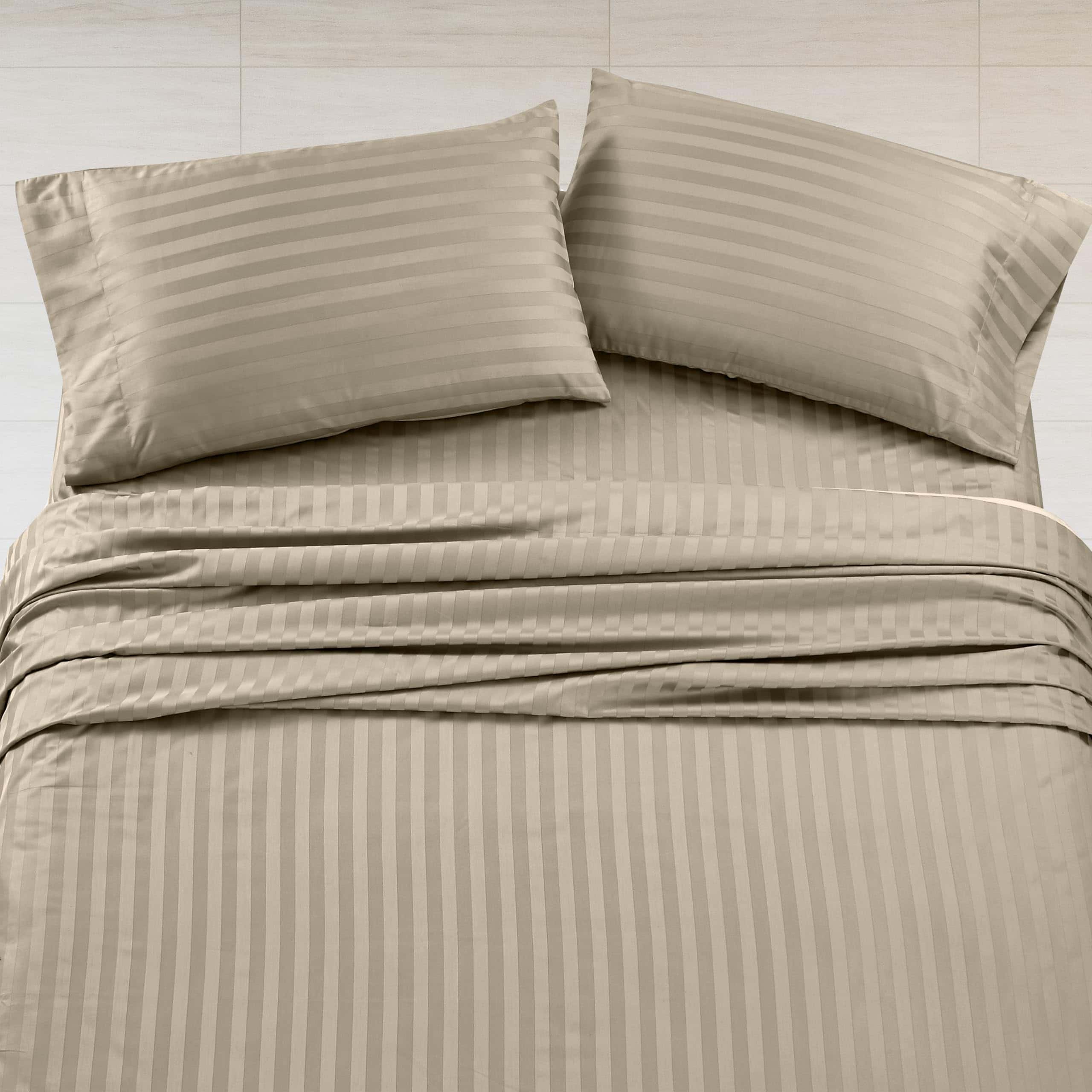 Transforma tu experiencia de sueño con este lujoso juego de sábanas de 4 piezas de California Design Den. El juego incluye una sábana ajustable para cama tamaño matrimonial, una sábana plana y dos fundas de almohada a rayas en un hermoso color khaki. Confeccionadas con algodón de 500 hilos de alta calidad, estas sábanas de cama proporcionan una suavidad excepcional, comodidad y transpirabilidad para que disfrutes de un sueño profundo y reparador. Las sábanas son ideales para personas que duermen calientes, ya que son ligeras y absorben la humedad, manteniéndote fresco durante toda la noche. La sábana ajustable es esencial para un ajuste perfecto en tu colchón, con elástico duradero y indicadores fáciles de hacer la cama. Estas sábanas de 500 hilos han sido verificadas por su suavidad y calidad, son lavables a máquina y certificadas Oeko Tex para tu seguridad. Haz una inversión inteligente en tu ropa de cama con estas sábanas de lujo que están diseñadas para durar durante años. Disfruta del confort y la elegancia en tu dormitorio con este juego de sábanas de algodón de 500 hilos.