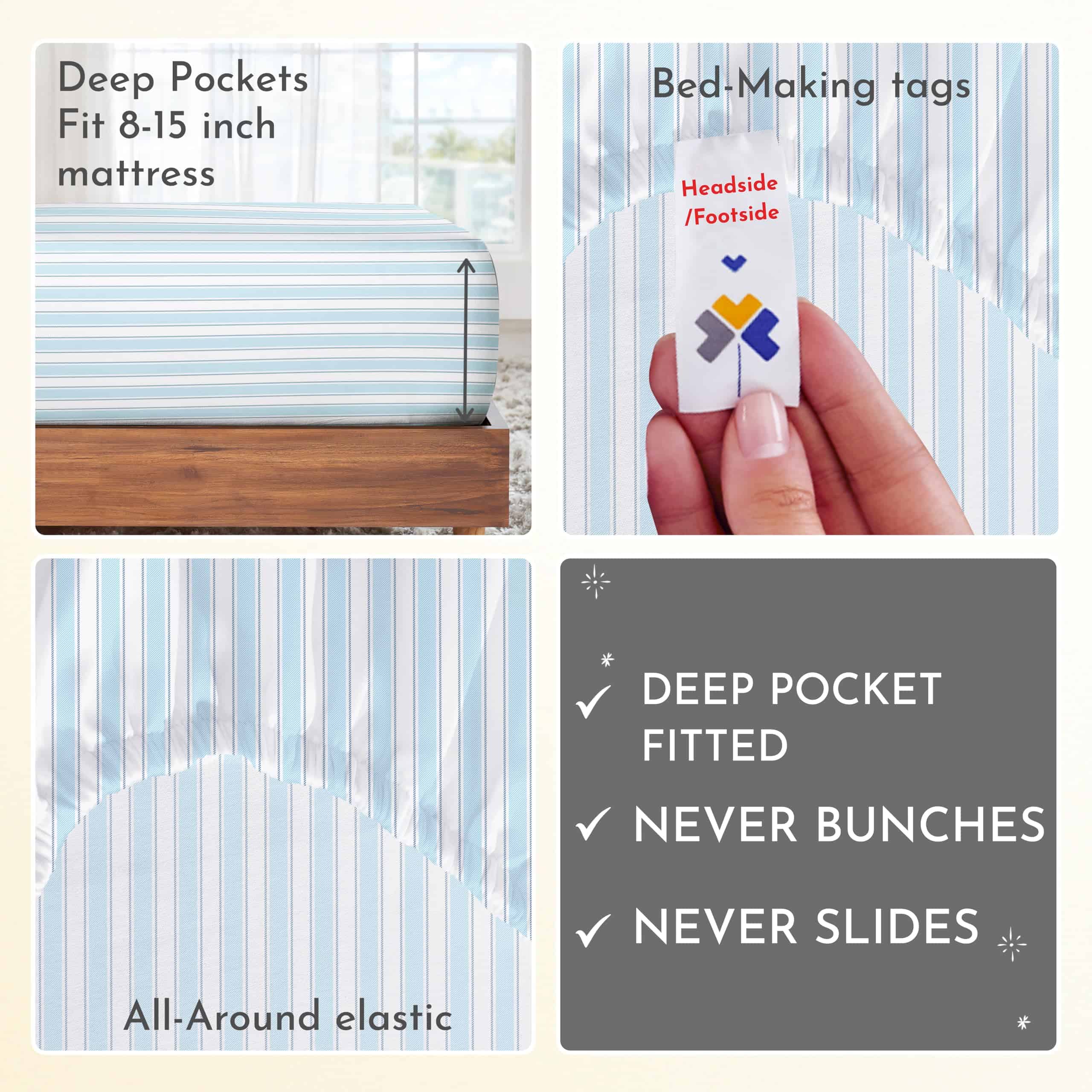 Expresa tu estilo personal con sábanas impresas de calidad sin sacrificar comodidad. Nuestros juegos de sábanas de algodón sateen de 400 hilos te ofrecen la solución perfecta. Los estampados claros y definidos no se desvanecerán ni apagarán, incluso después de muchos lavados. Las sábanas de algodón 100% suaves y suaves garantizan que tendrás una excelente noche de sueño. Nuestras sábanas gemelas con bolsillos profundos de 15 pulgadas se adaptarán perfectamente a tus colchones de 8-15 pulgadas y la elasticidad resistente evitará que las sábanas se salgan o se aflojen con el tiempo. La calidad y durabilidad de la impresión son excelentes, con colores brillantes y equilibrados. Las impresiones se realizan con tintes de alta calidad que no se desvanecen ni destiñen con los lavados, asegurando que el patrón se mantenga vibrante durante años. Personaliza tu dormitorio con una variedad de opciones de estampados, desde flores hasta rayas, coordinando fácilmente tu ropa de cama para adaptarse a tu estado de ánimo y preferencias. No más sábanas de un solo color aburridas. Nuestras sábanas estampadas están diseñadas para durar y brindarte un aspecto hermoso y atemporal. Te garantizamos que te encantarán estas sábanas, ya que son suaves y están tan bien hechas como otras sábanas de algodón mucho más caras. Resolveremos cualquier problema que puedas tener en 1 día hábil para que tengas una experiencia deliciosa como cliente.