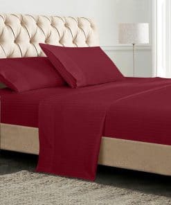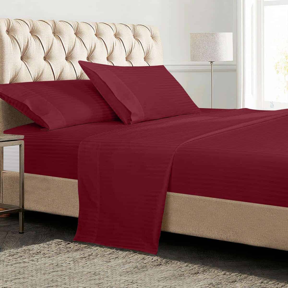 Juego de sábanas a rayas color burdeos de 300 hilos Royale