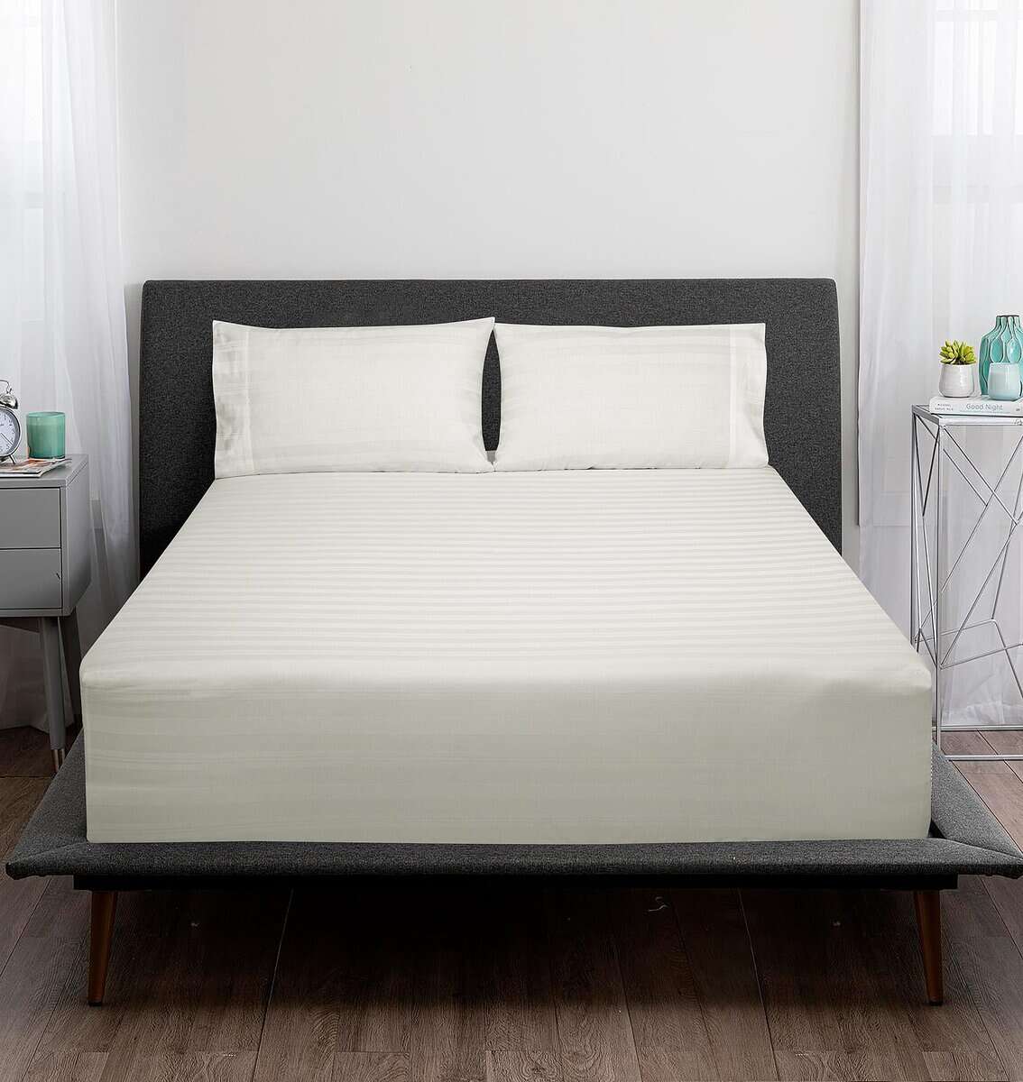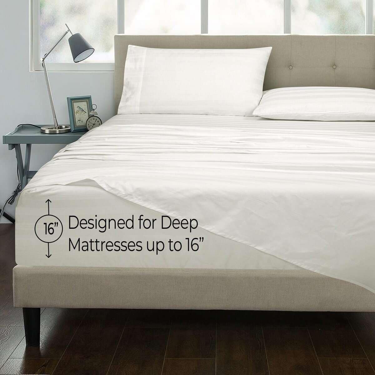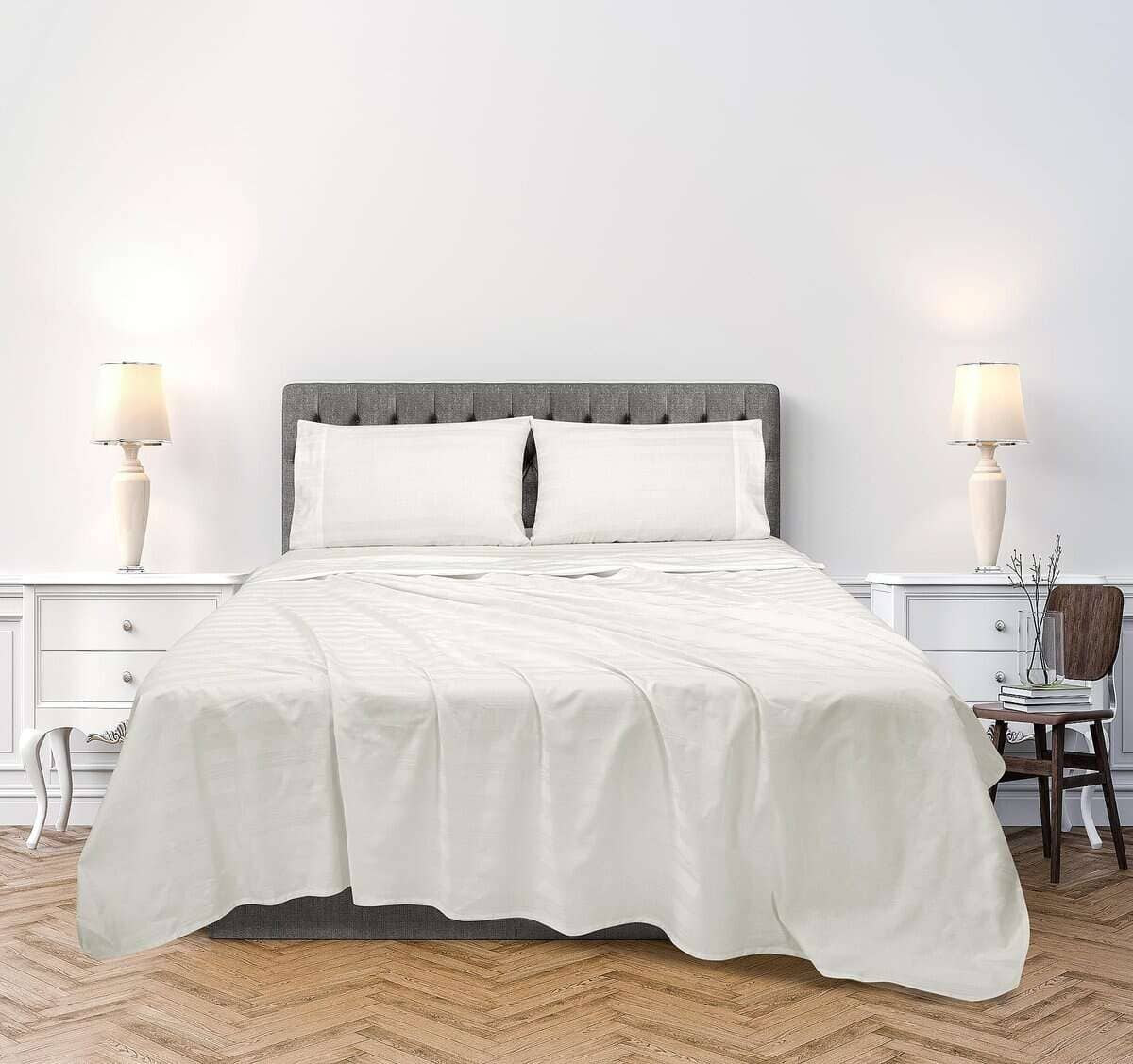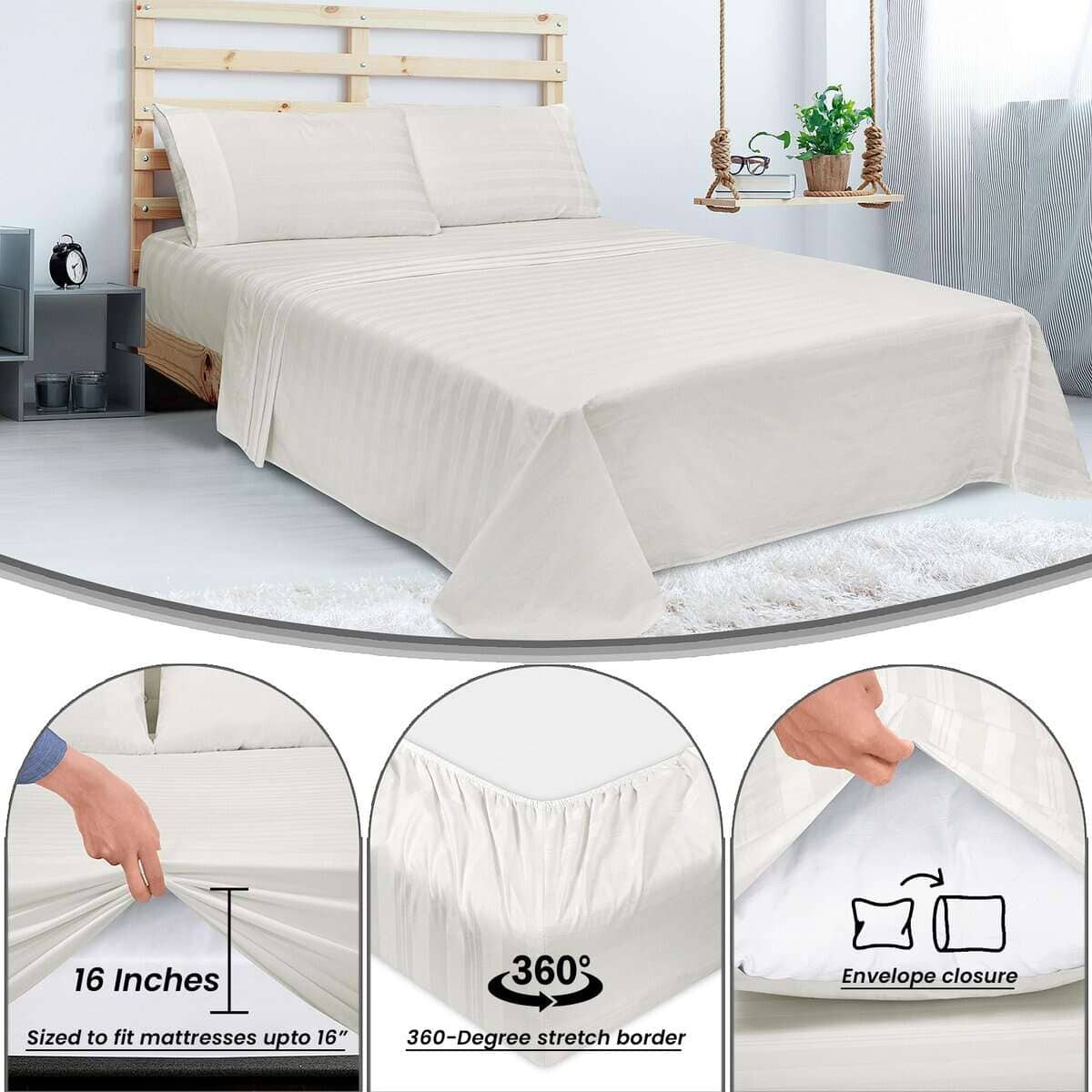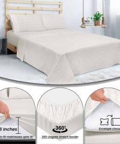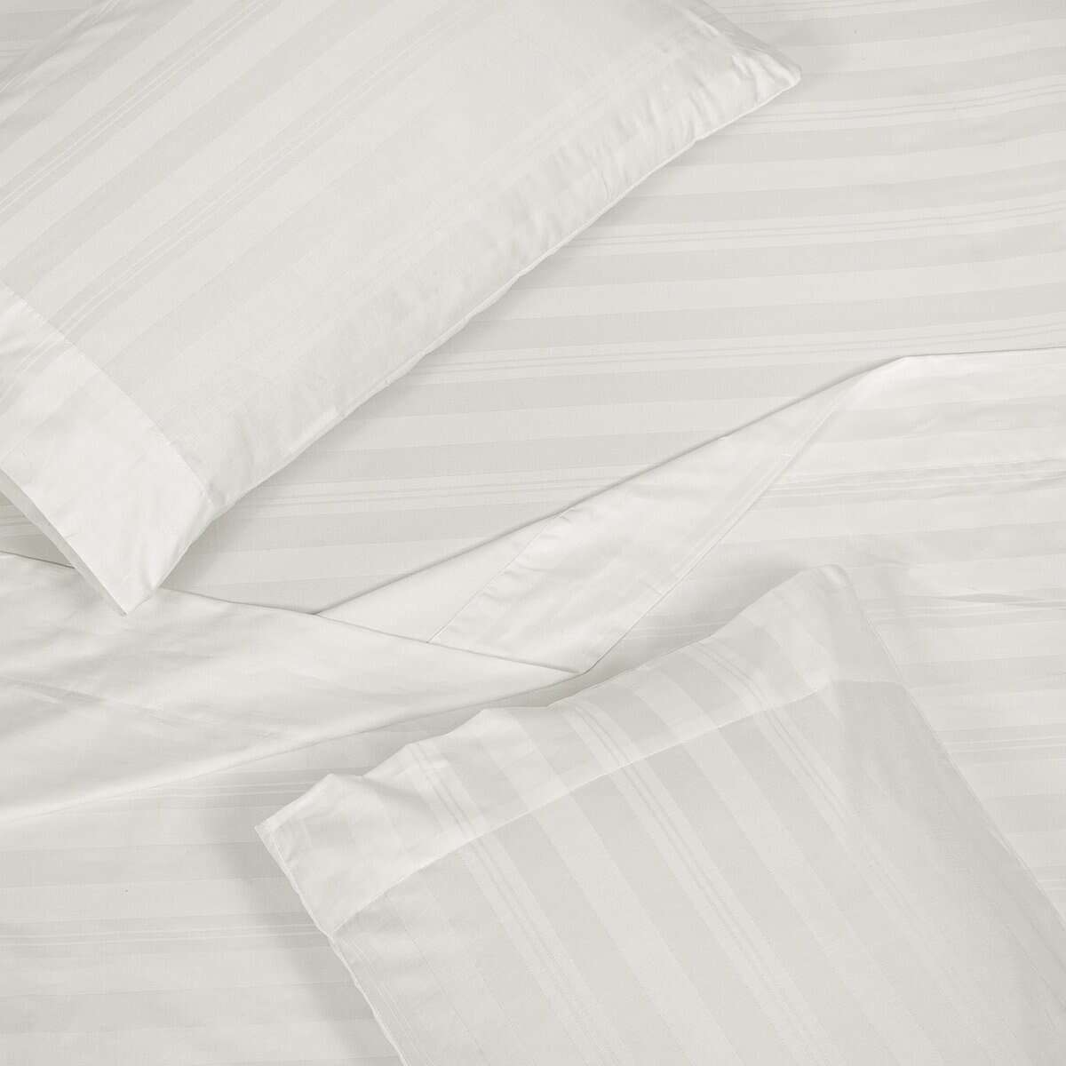 Juego de Sábanas a Rayas de 300 Hilos 100% -Multirrayas Blan