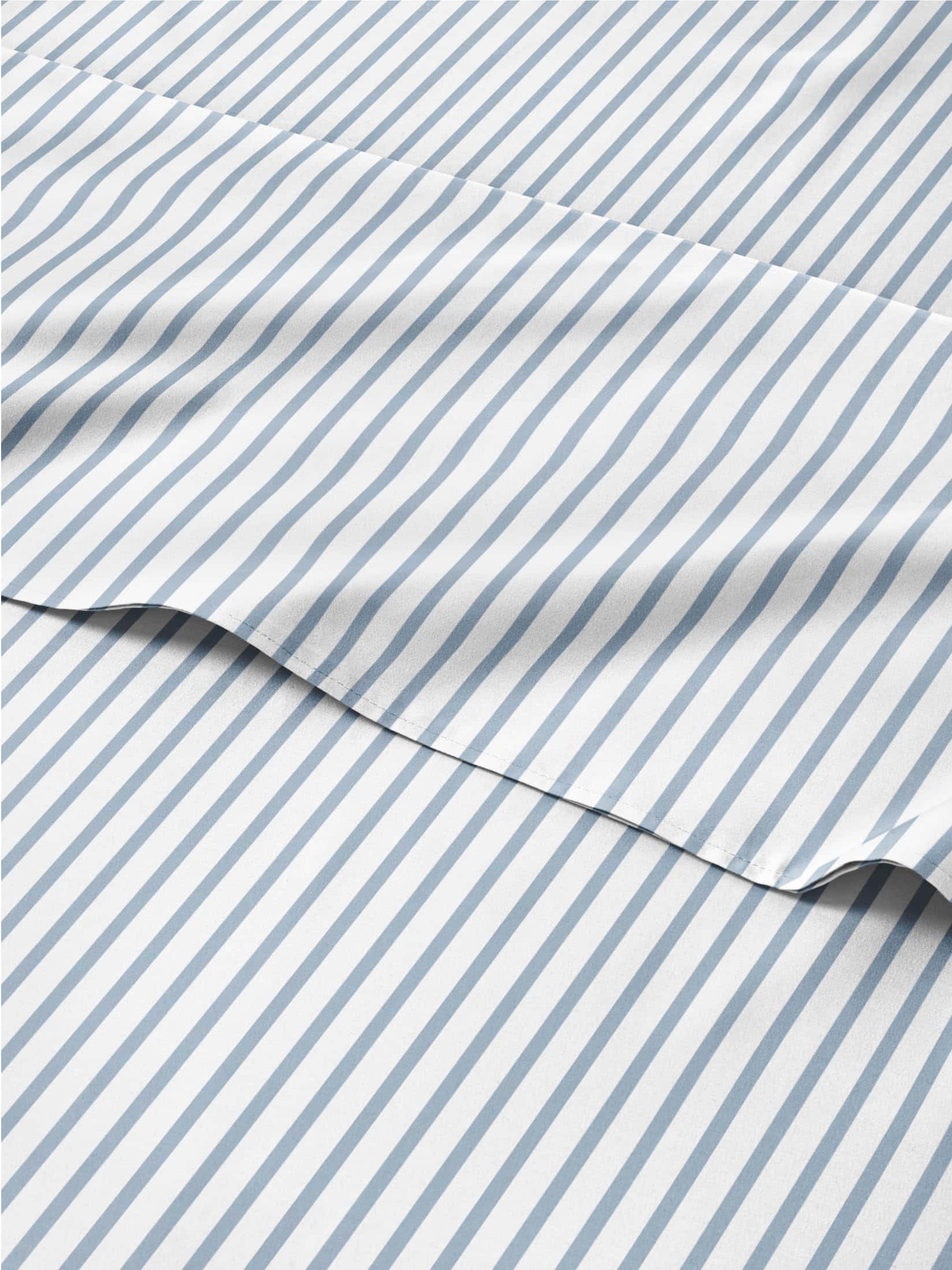Juego de Sábanas a Rayas de 4 Piezas para -Azul y Blanco