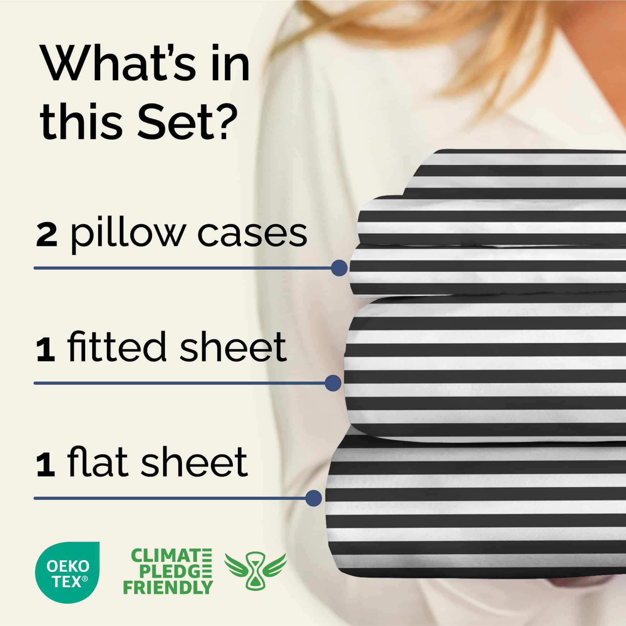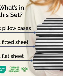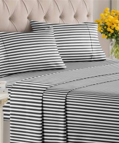 Juego de Sábanas a Rayas de 4 Piezas para -Negro y Blanco