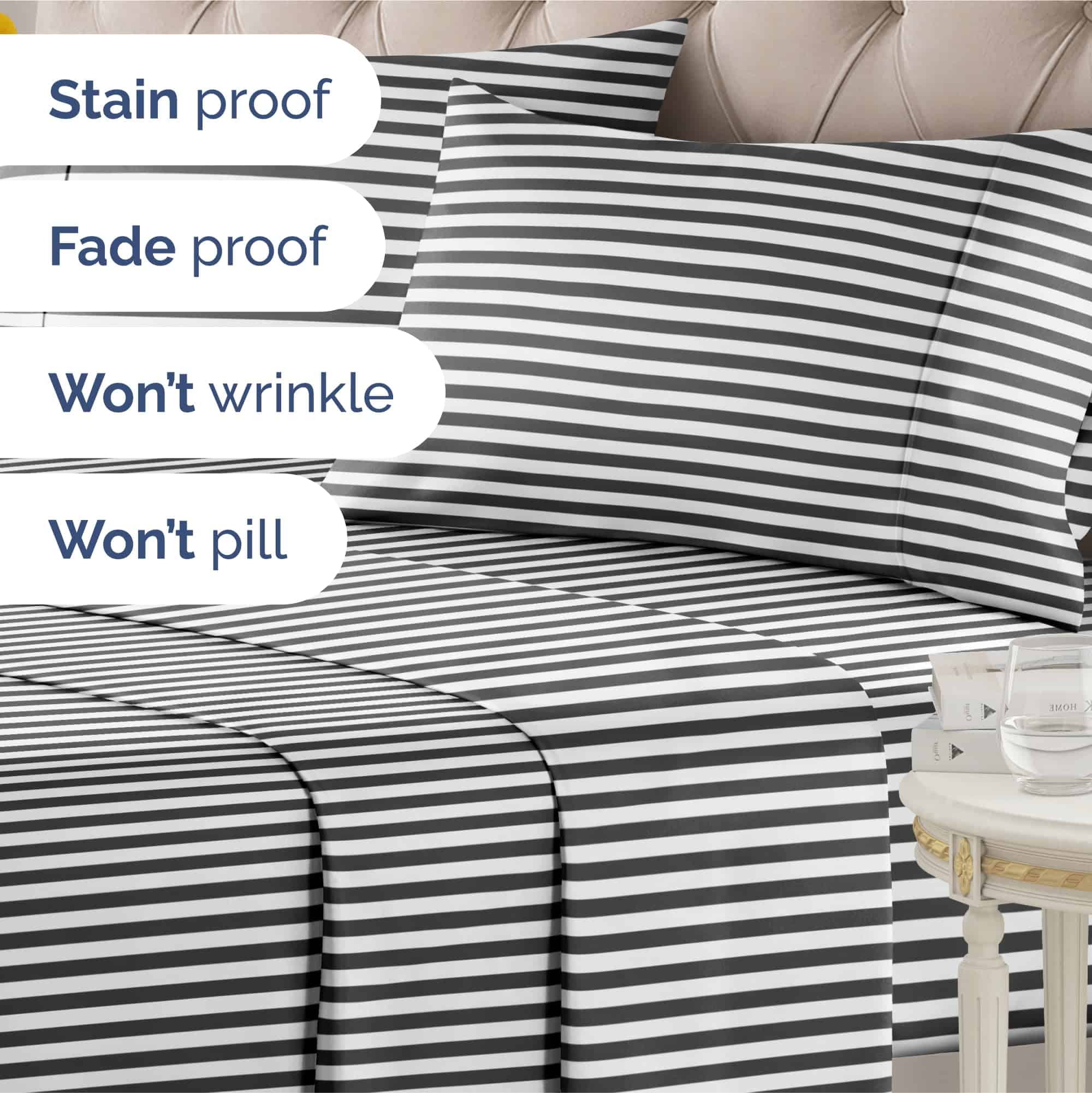 Sábanas de carbón negro oscuro brillante blanco brillante ropa de cama algodón rayas verticales naturales bolsillos profundos seda de bambú hotel microfibra sábana de lujo estampada refrigerante sábana y funda de almohada juegos decoración de habitaciones hombres lino pinstripe Premium orgánico elástico