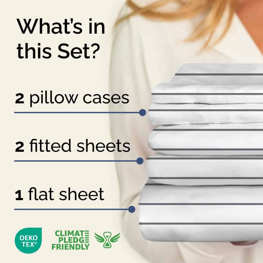 Juego de sábanas a rayas de 5 piezas para cama – Oeko-TEX