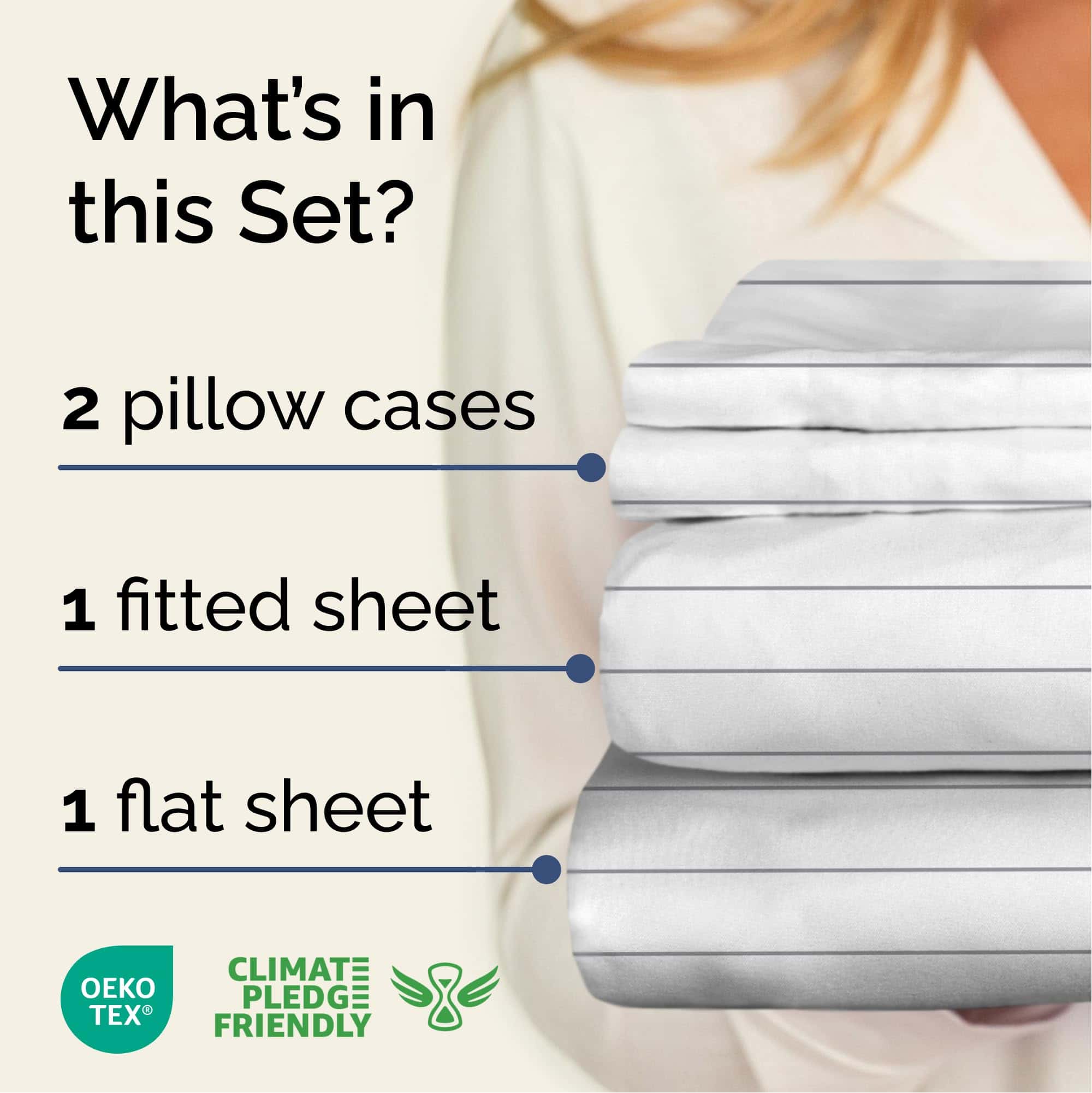 Juego de Sábanas a Rayas Grises de 4 Piezas para Cama de
