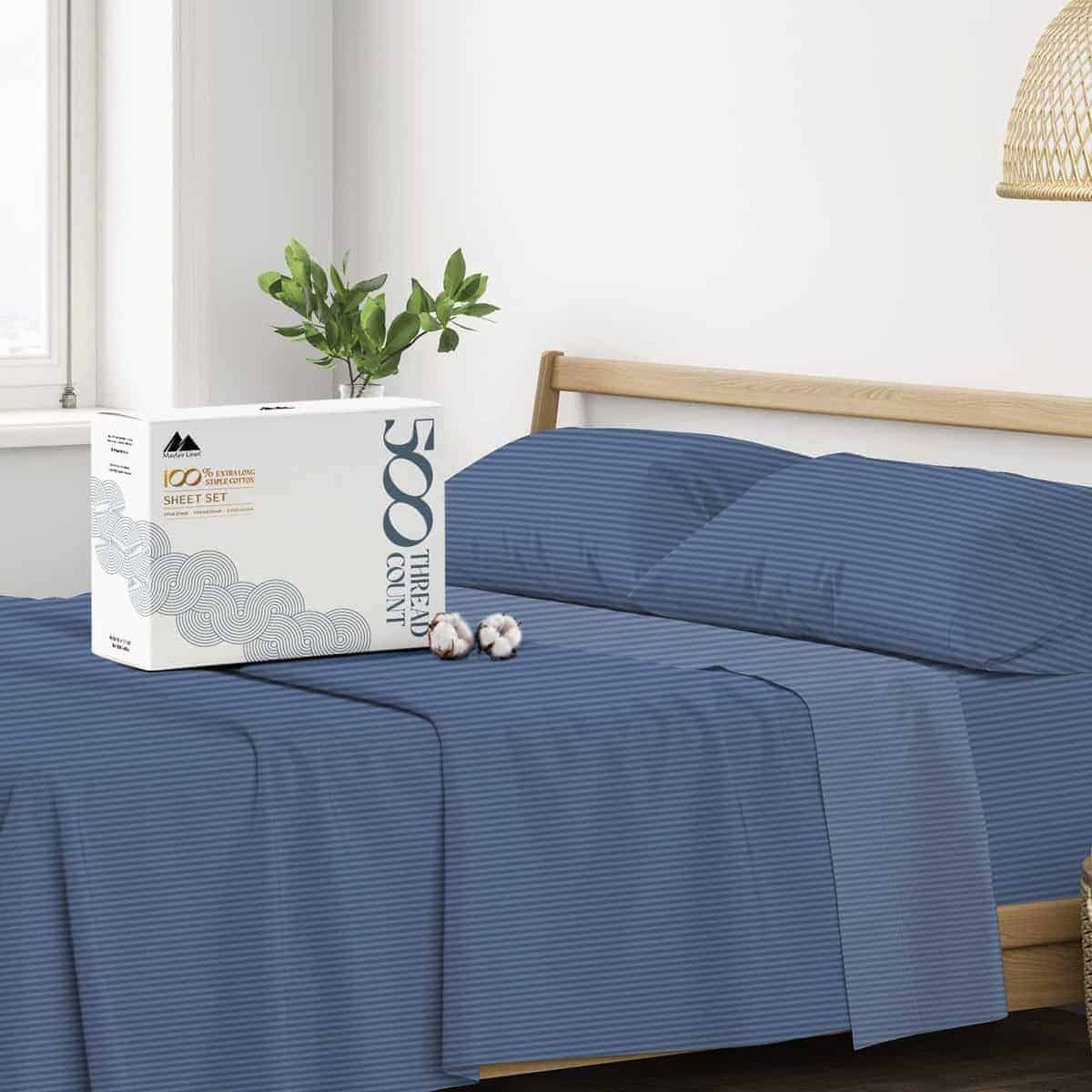 Juego de Sábanas a Rayas Mayfair Linen -Azul Claro