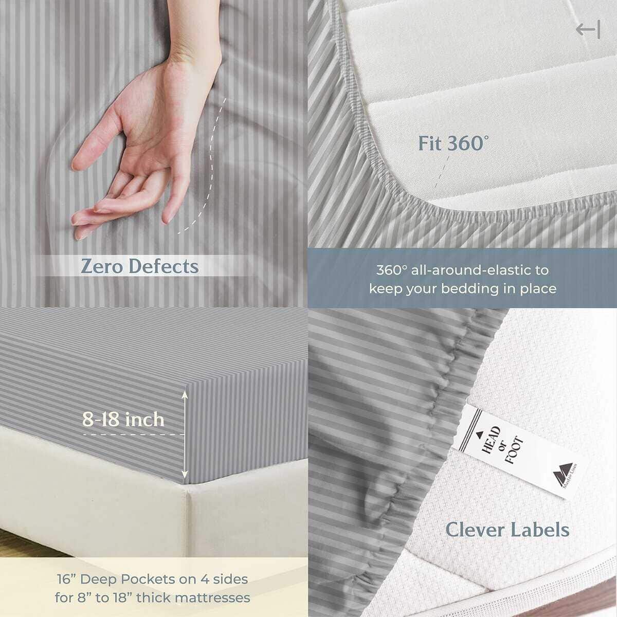Juego de Sábanas a rayas Mayfair Linen -Raya – Gris Claro