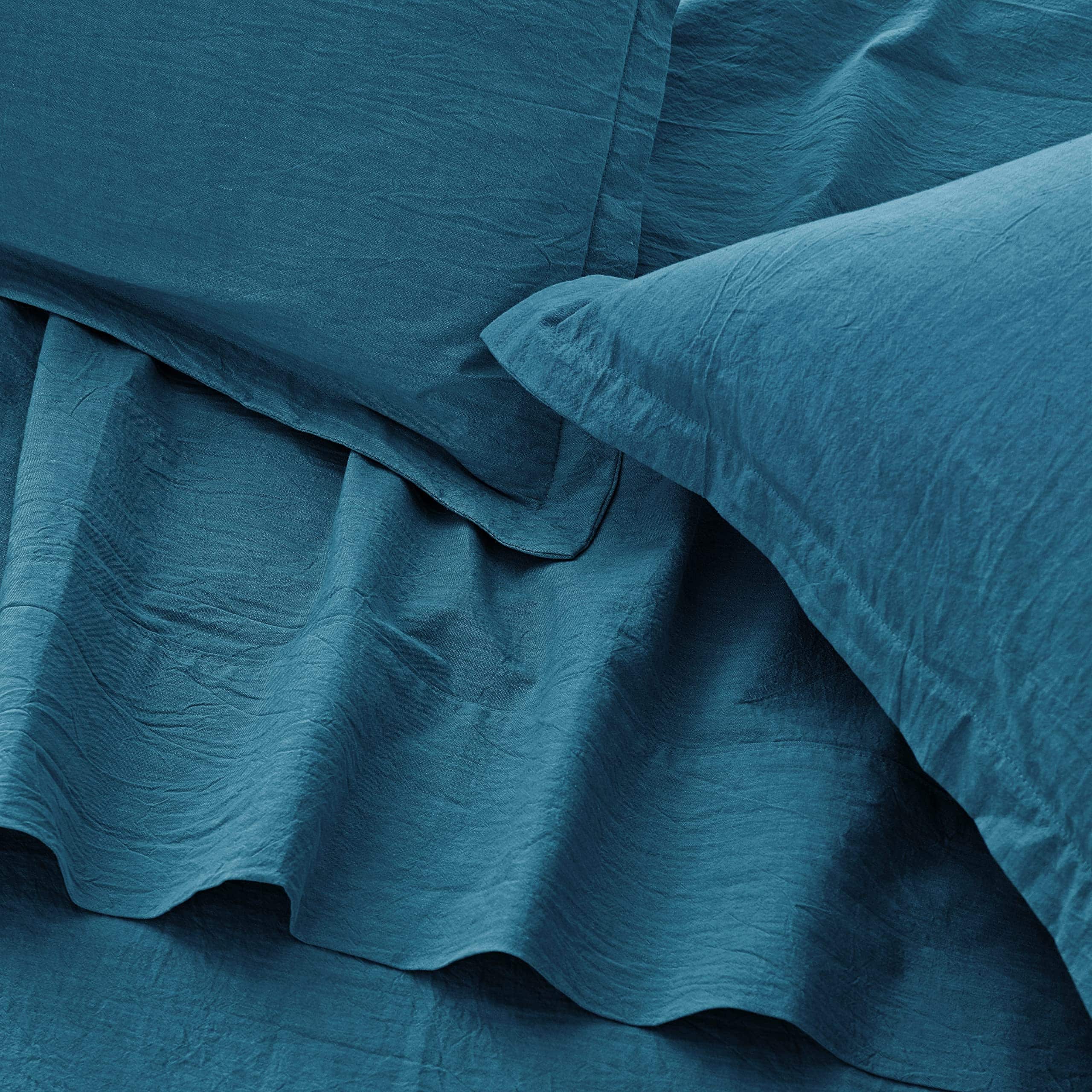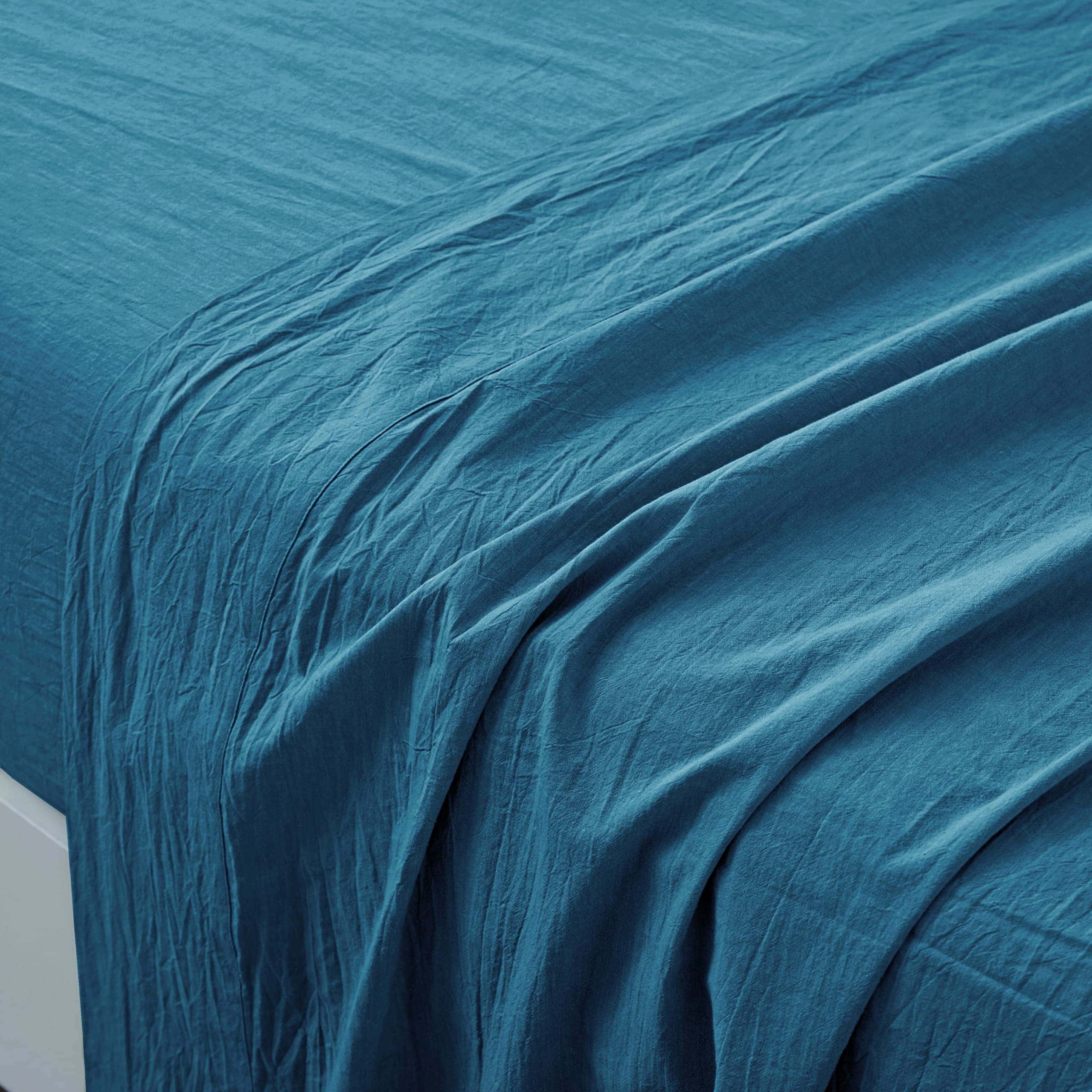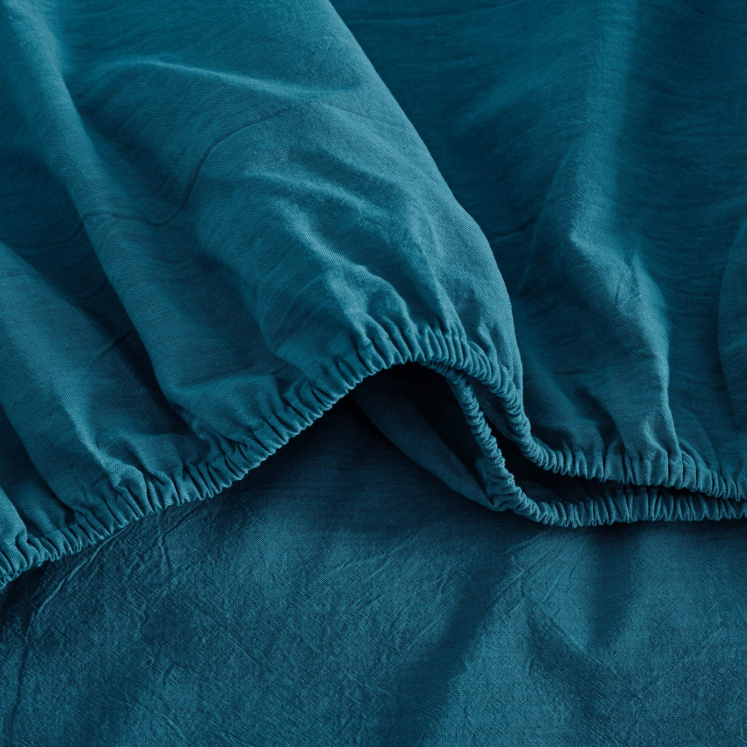 Juego de sábanas ajustables de algodón lavado -Ocean Teal