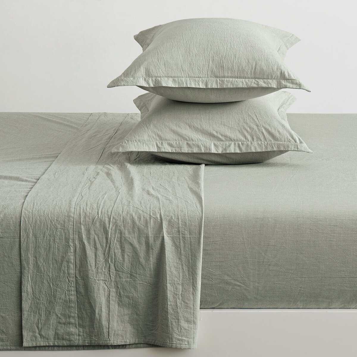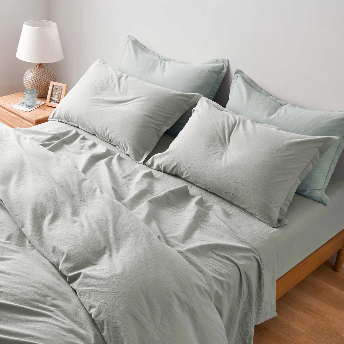 Juego de sábanas ajustables de algodón -Verde Salvia Pálido