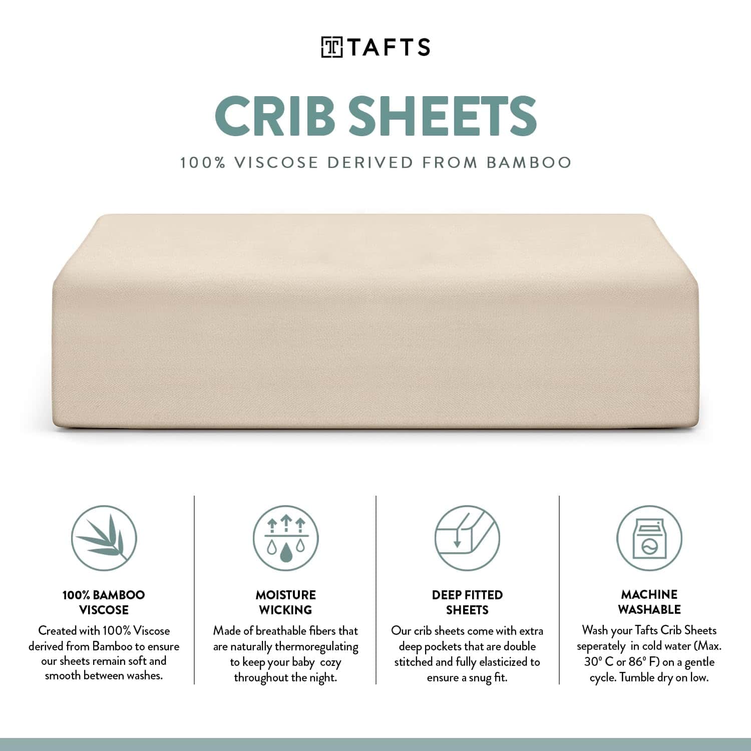 TAFTS FITTED CRIB SHEETS – 2 Pack – 100% Viscose – Imported – Girls, Boys & Unisex – 8 Inch Deep Pocket, – Standard Crib & Toddler Mattress – Cooling – Soft – 360 Elastic – Lifetime Quality – 28 inches x 52 inches