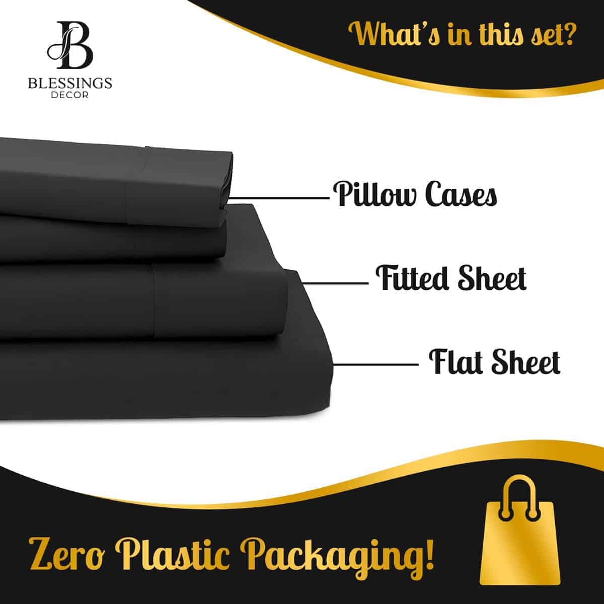 Blessings Decor presenta su juego de sábanas ajustadas de lujo 100% algodón, que combina la suavidad y frescura de las sábanas de hotel con el estilo y elegancia de fundas de almohada impecables. La artesanía meticulosa de este juego de sábanas garantiza un descanso reparador y un ambiente de sueño acogedor. Cada juego de sábanas incluye una sábana plana, una sábana ajustada con bolsillo profundo y una funda de almohada estándar.