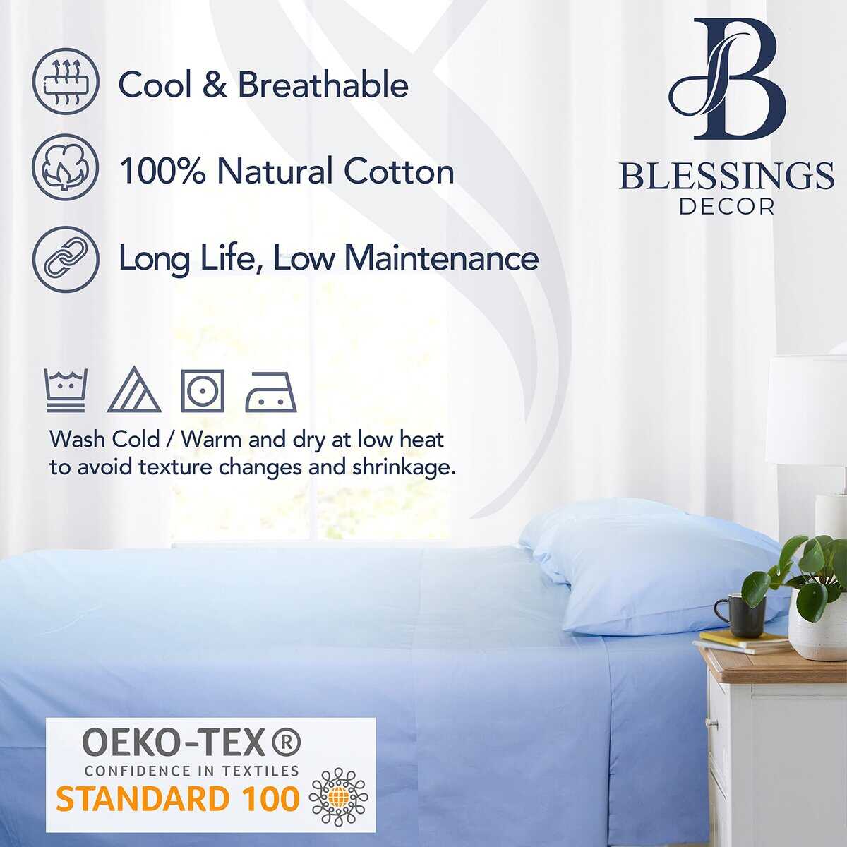 Estas sábanas son fáciles de cuidar, ya que son lavables a máquina y se pueden secar a baja temperatura. Con cada lavado, las sábanas se suavizan aún más, lo que garantiza un ambiente de sueño fresco y saludable. Disfruta de la comodidad y el lujo de las sábanas 100% algodón de Blessings Decor y regálate un descanso reparador cada noche.