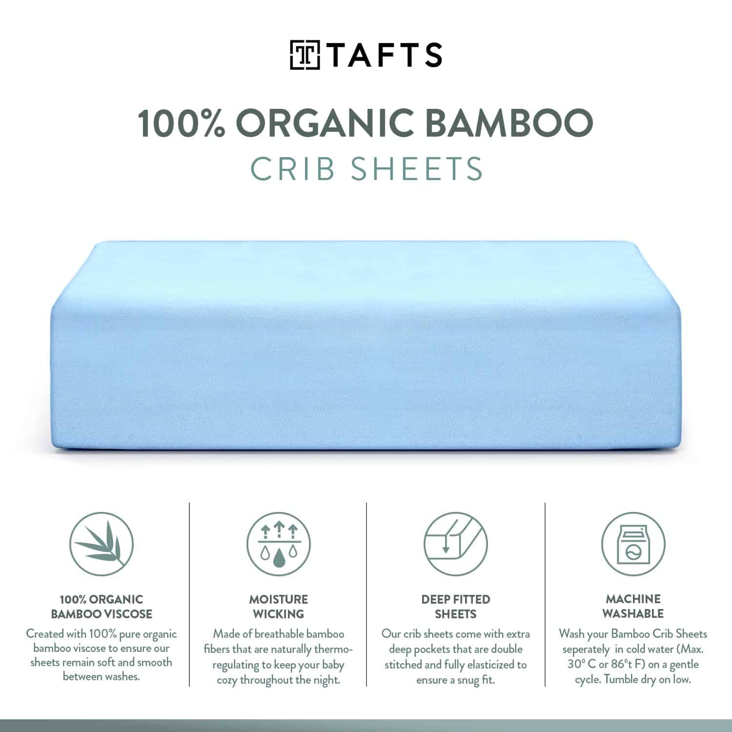 JUEGO DE SÁBANAS AJUSTADAS TAFTS – Paquete de 2 – 100% Viscosa – Importado – Niñas, Niños y Unisex – Bolsillo de 8 Pulgadas de Profundidad, – Colchón Estándar para Cuna y Toddler – Refrigerante – Suave – 360 Elástico – Calidad de Por Vida – 28 pulgadas x 52 pulgadas