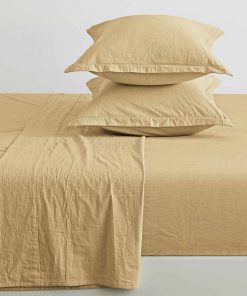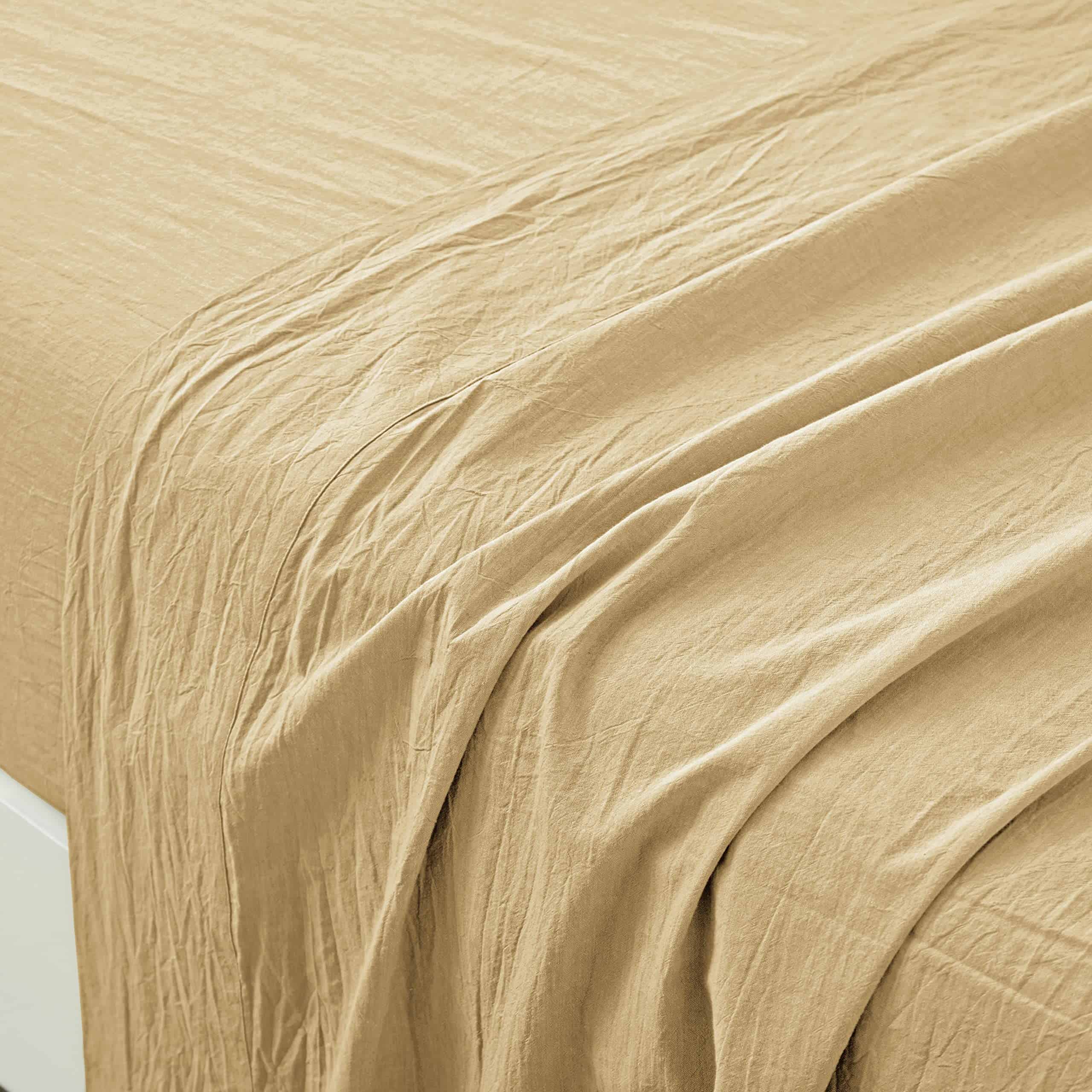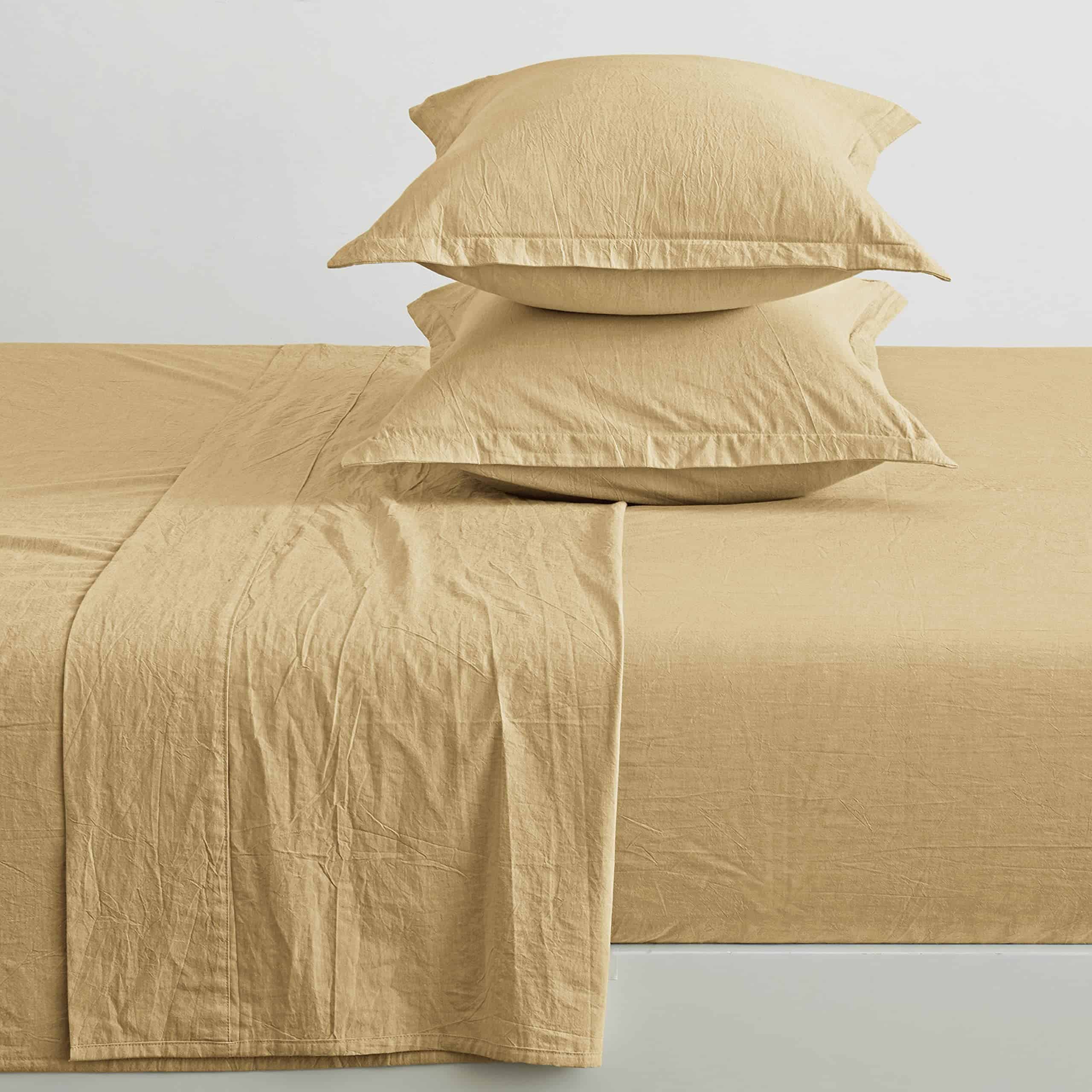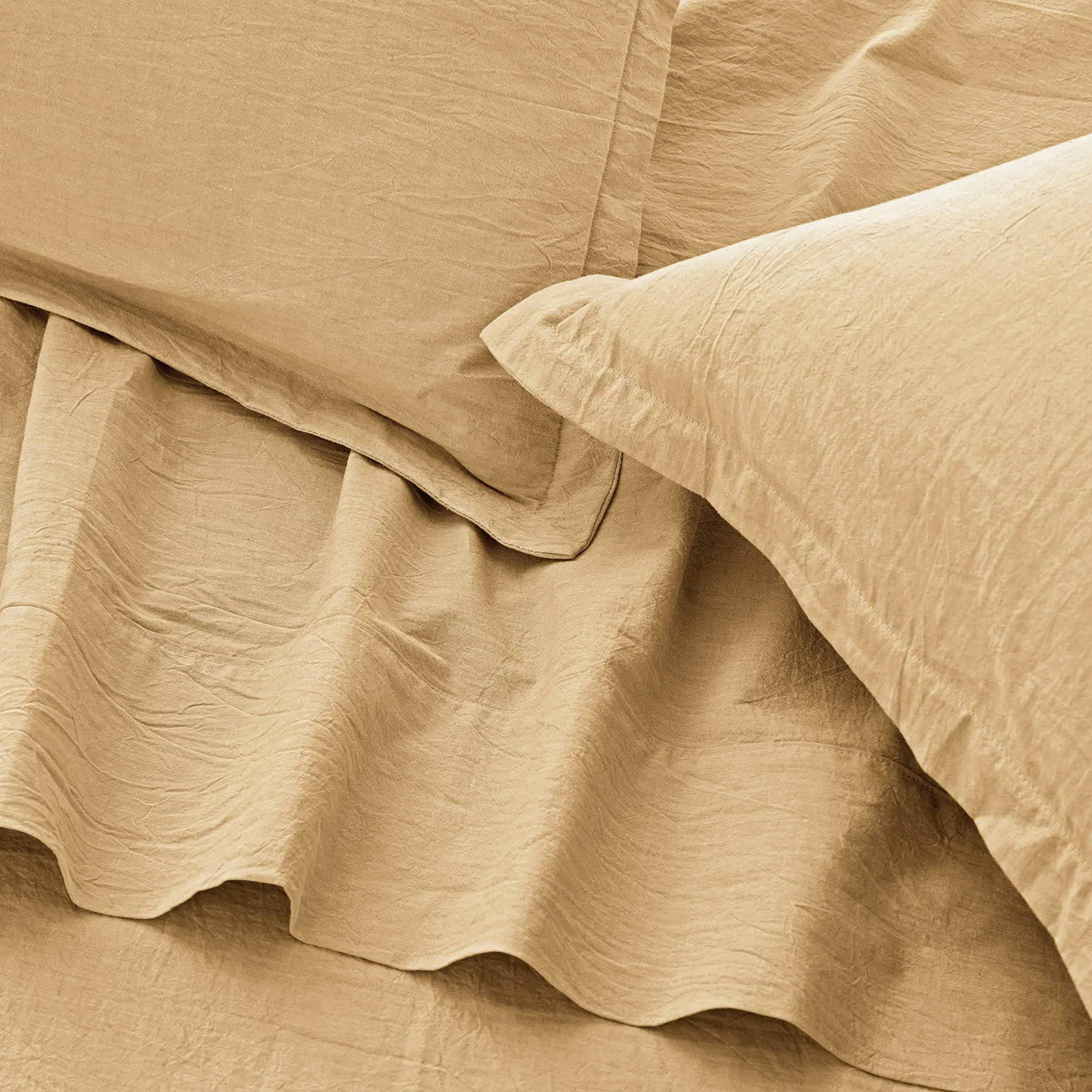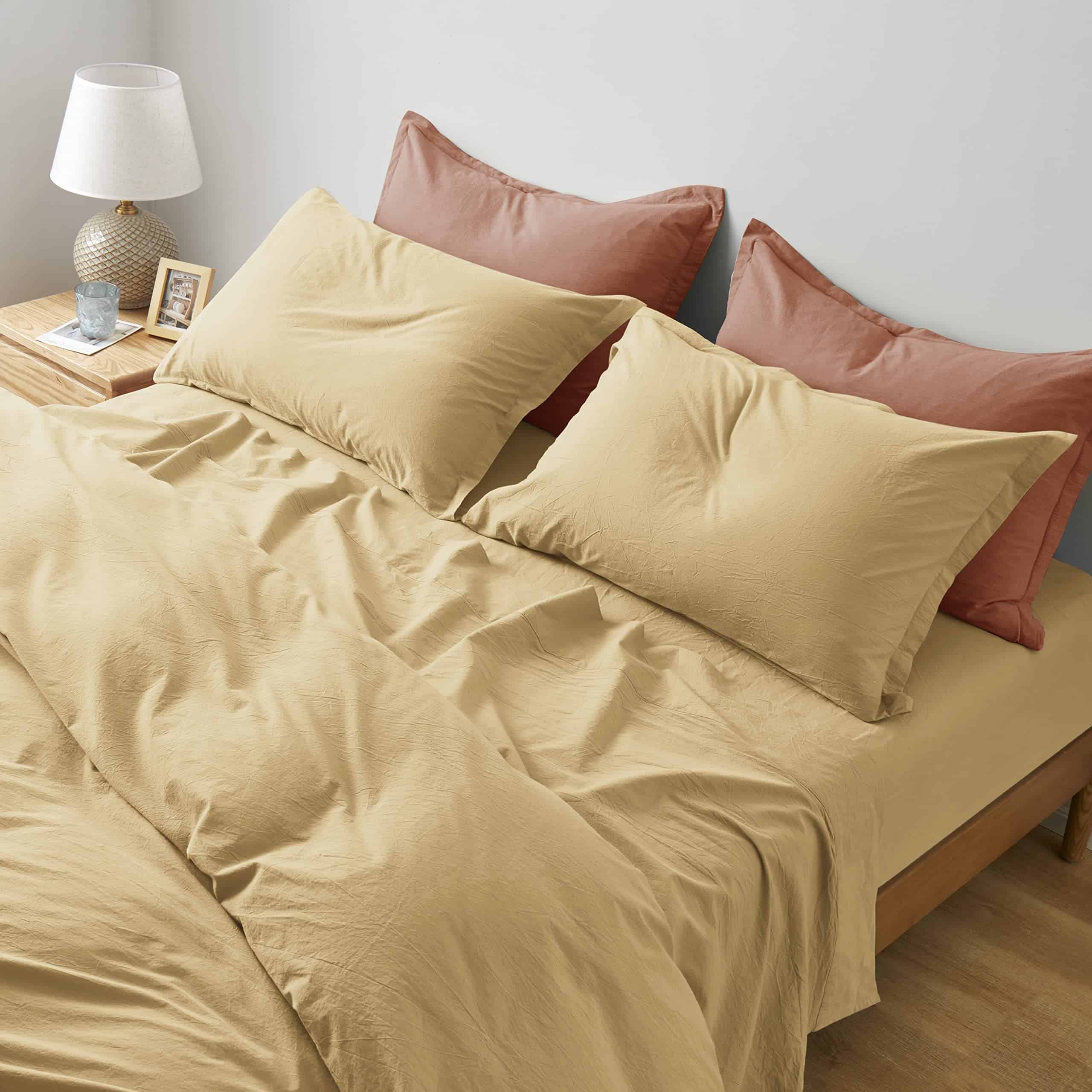Juego de sábanas ajustadas de algodón lavado -Amarillo Ocre