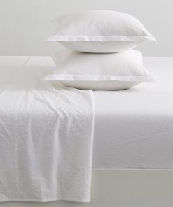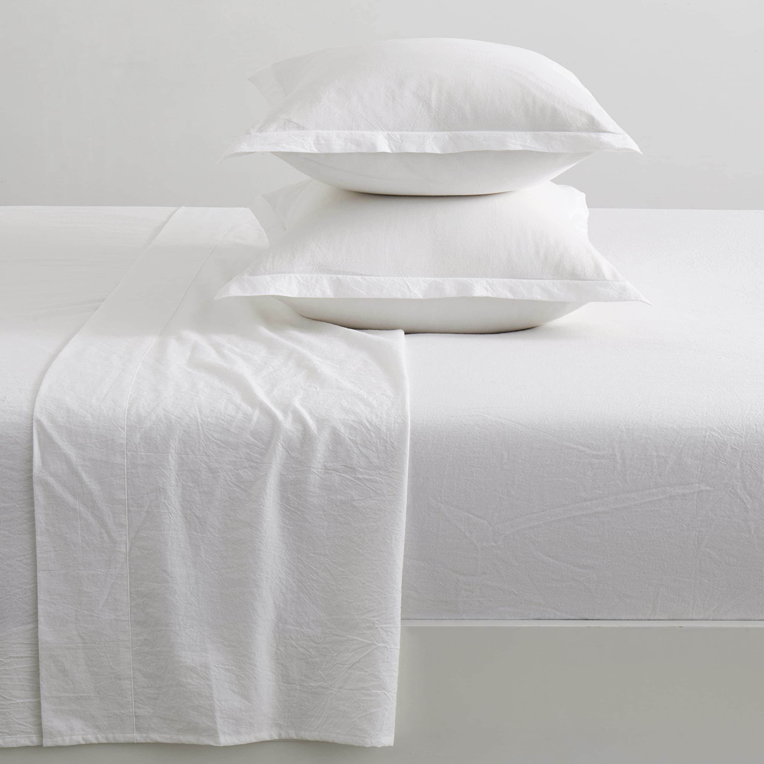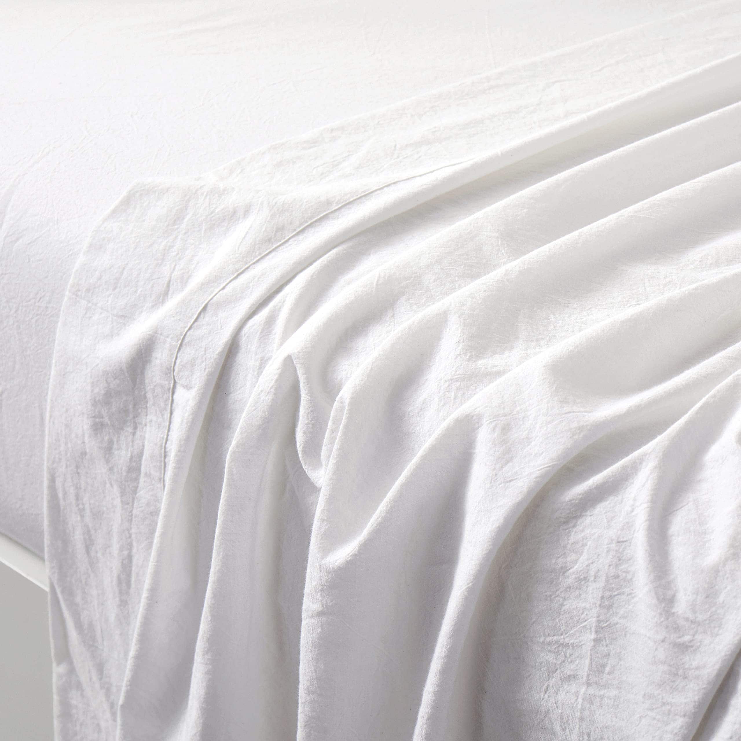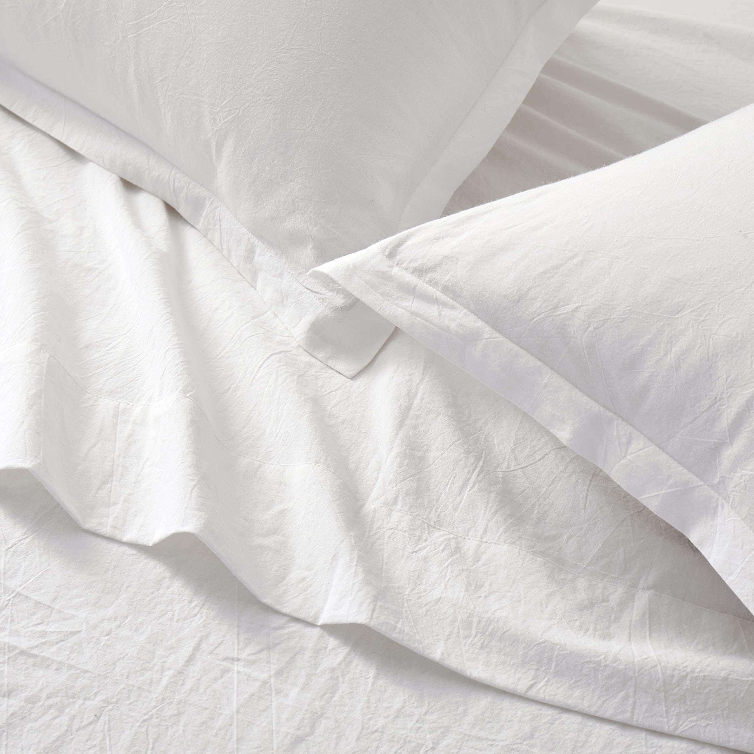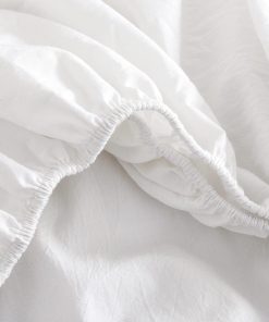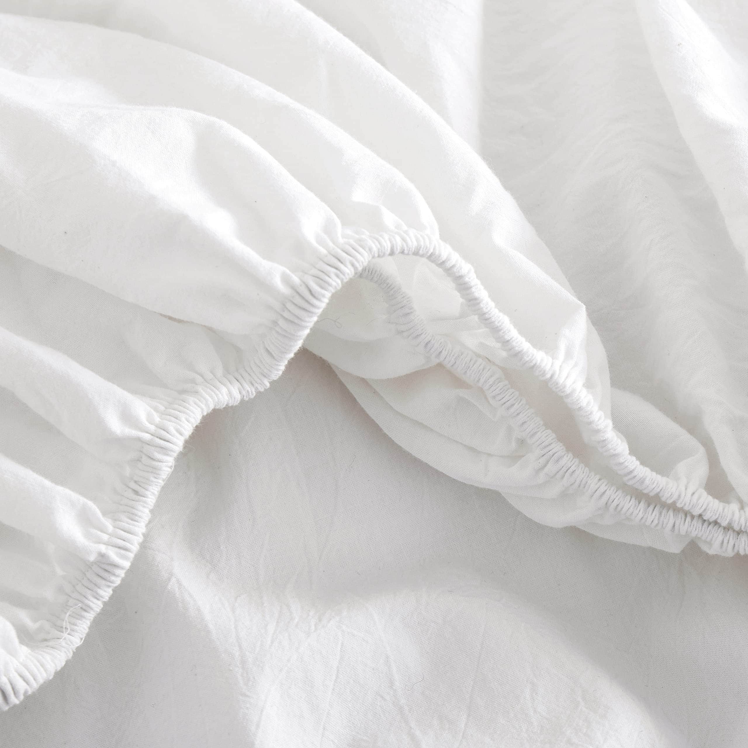 Juego de sábanas ajustadas de algodón lavado -Blanco