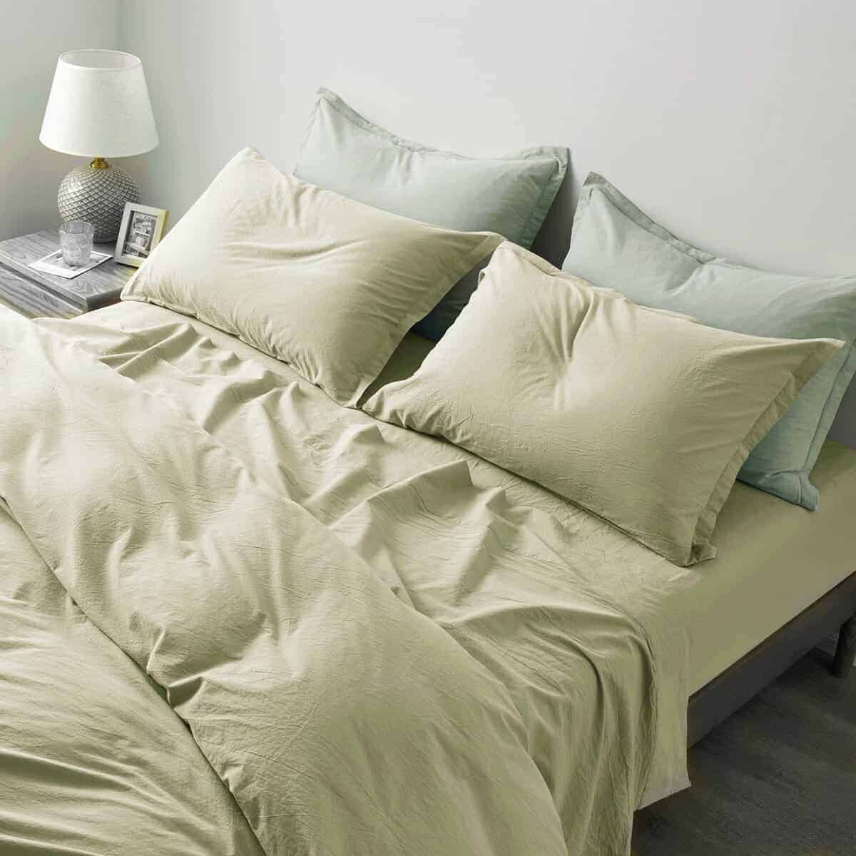 Juego de sábanas ajustadas de algodón lavado -Sage