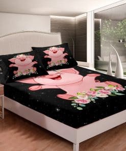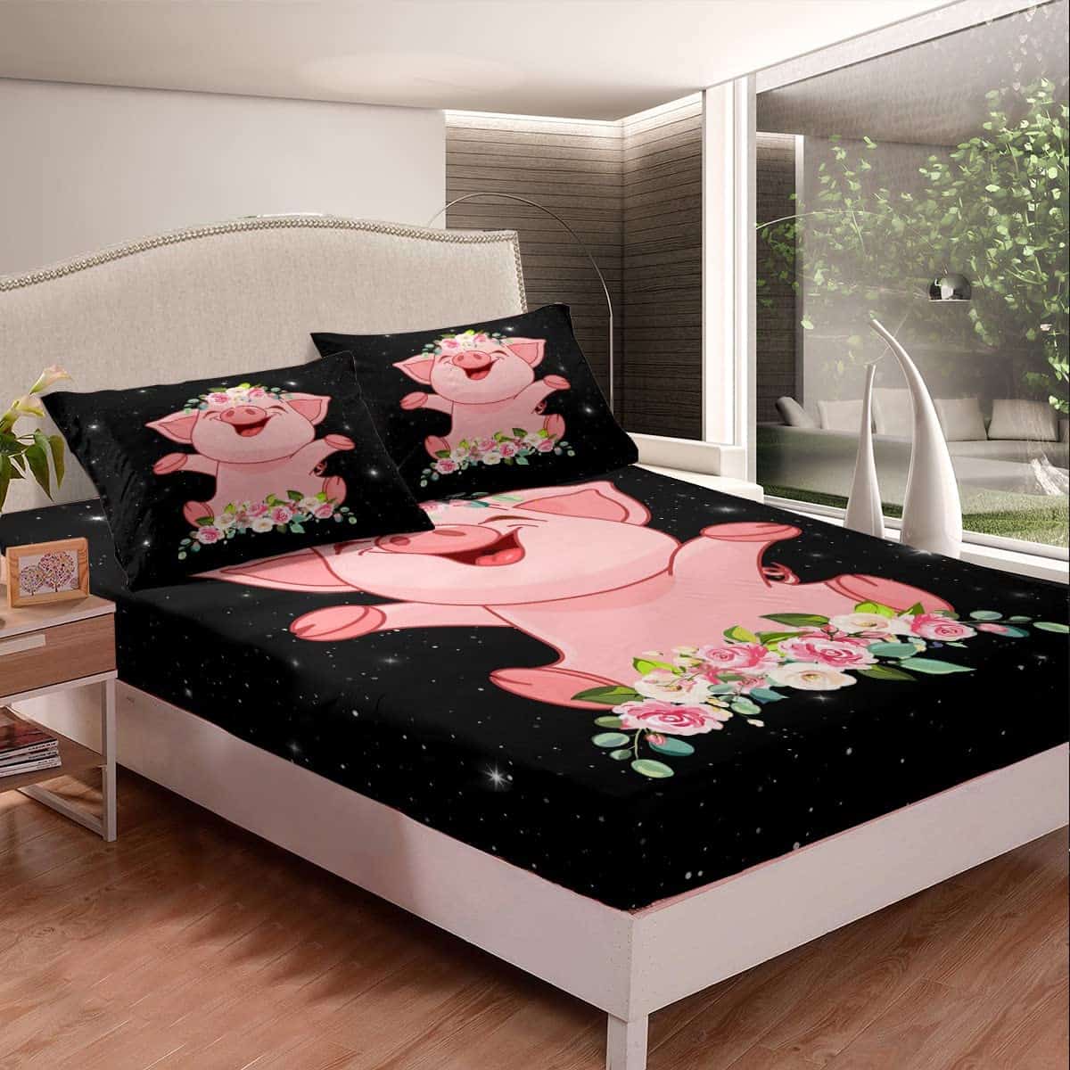 Juego de sábanas ajustadas Erosebridal Pink Pig para niñas