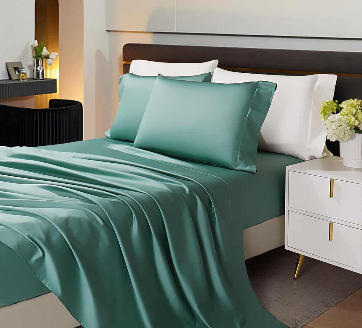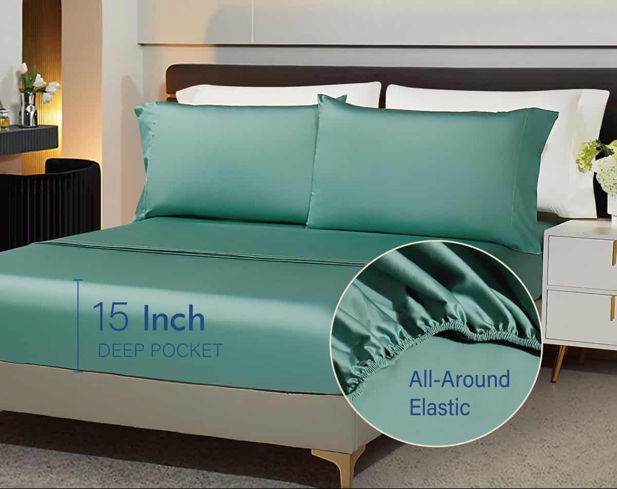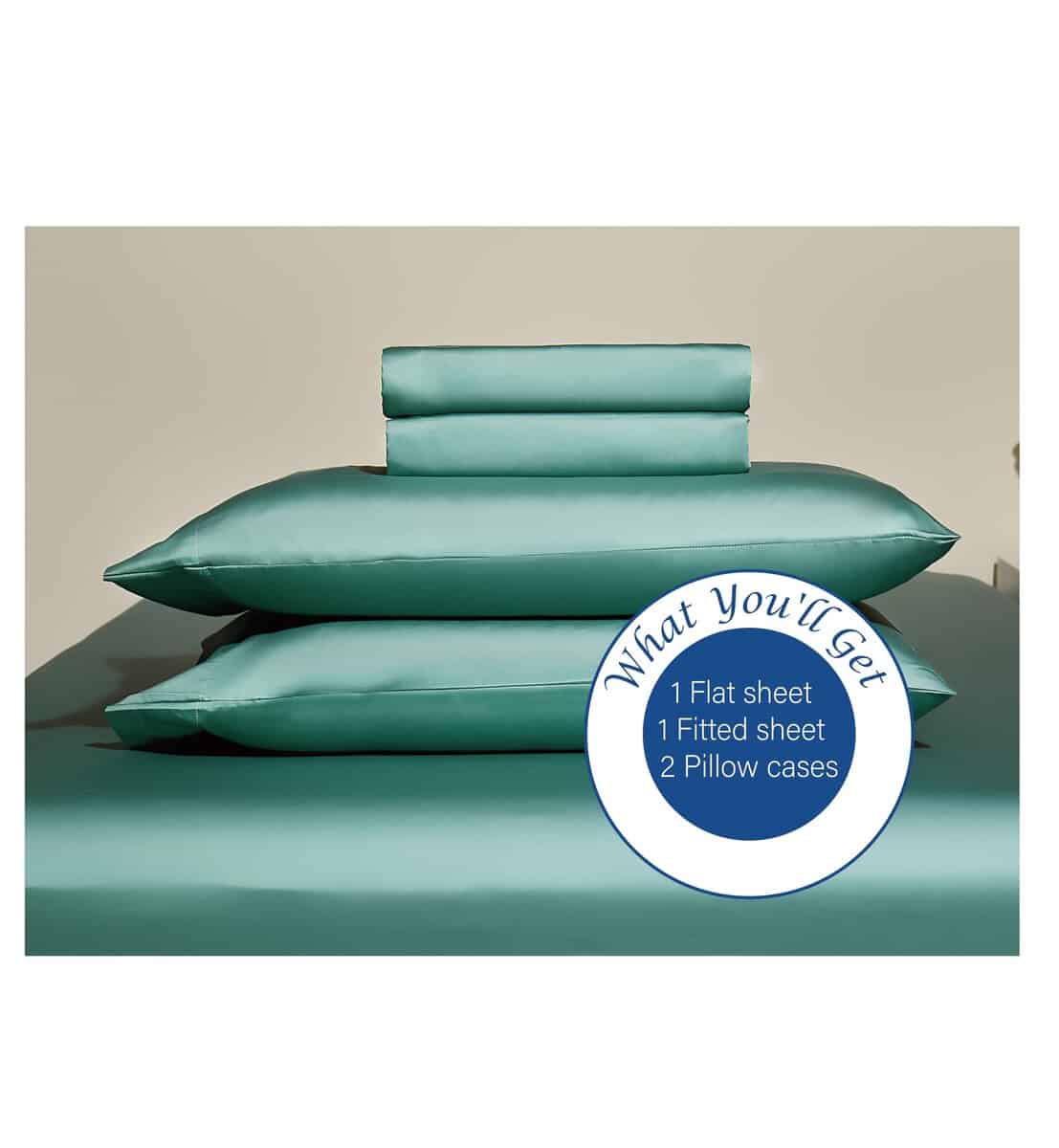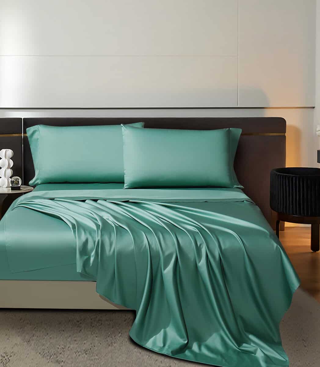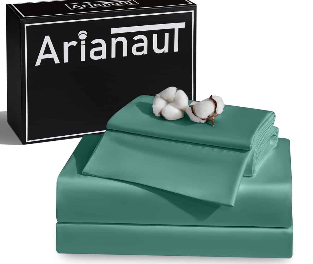 Juego de sábanas Arianaut Queen verde 100% satén de algodón