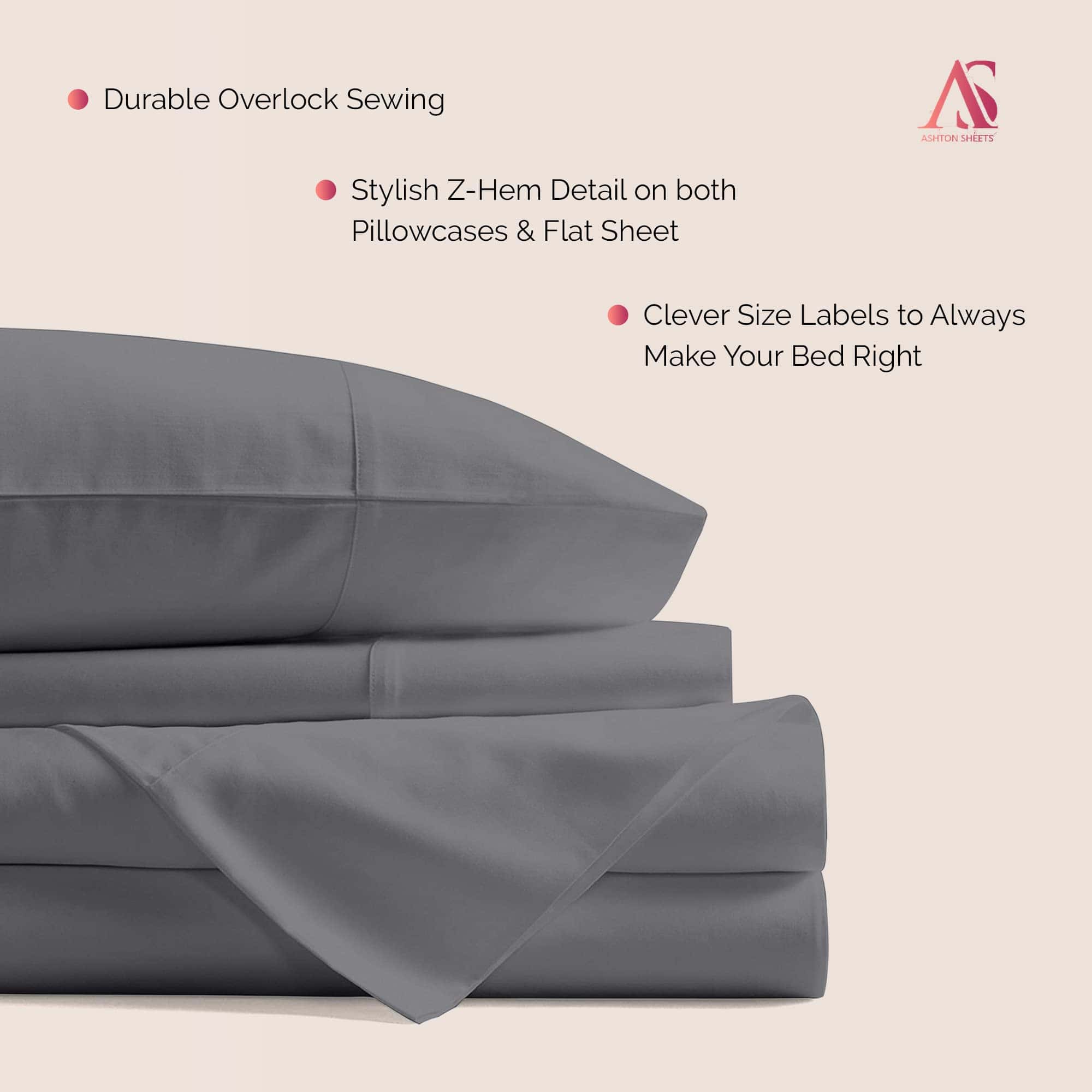 Juego de sábanas Ashton 100% algodón egipcio -Gris Oscuro