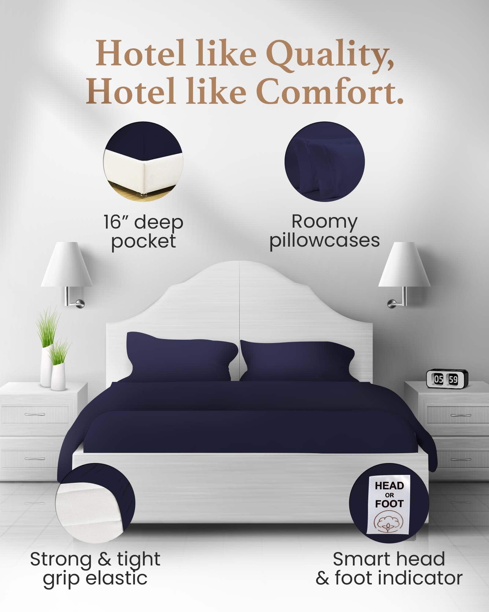 Juego de Sábanas Azul Marino para Cama Individual, 4